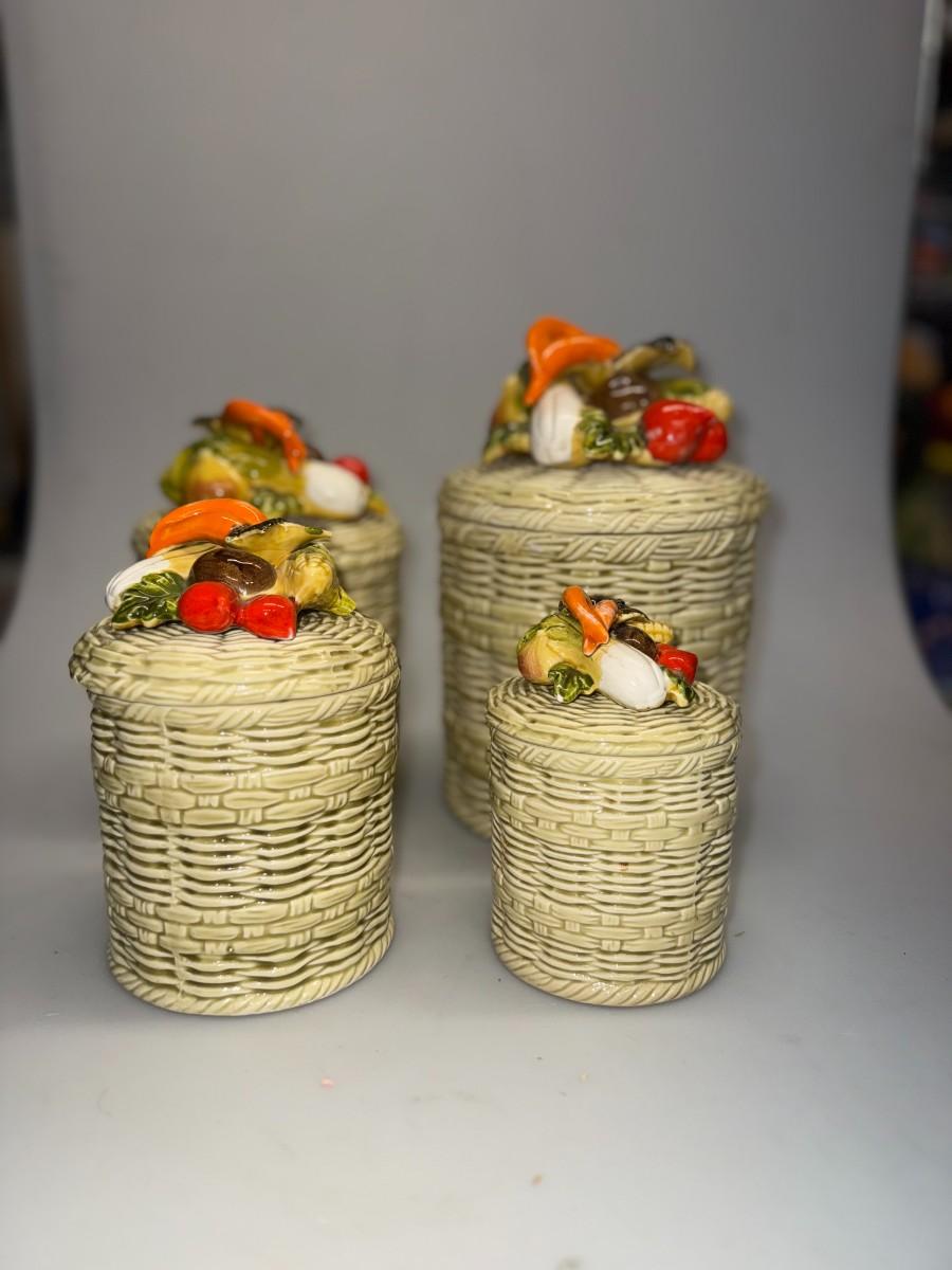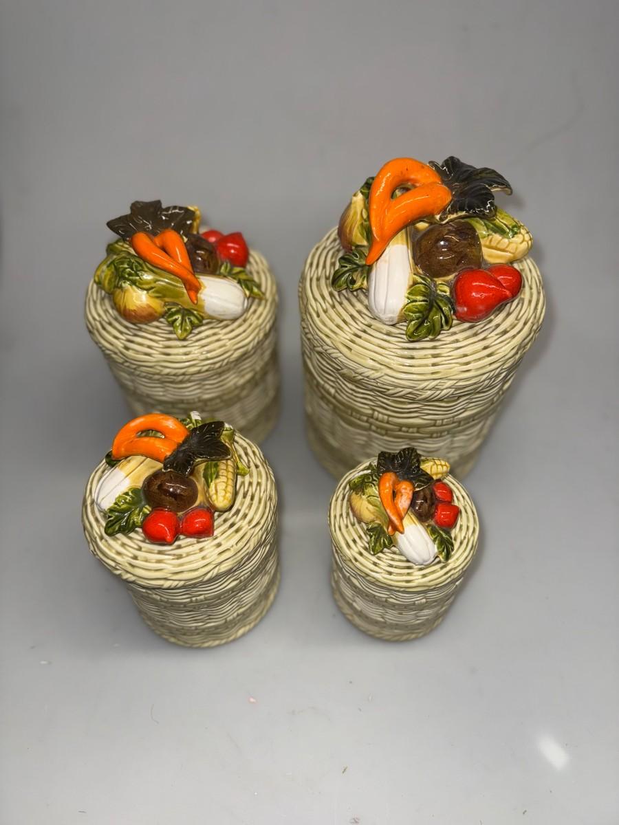 3 VTG Lefton George Imports Ceramic Kitchen Canisters w/ Veg Lids Japan