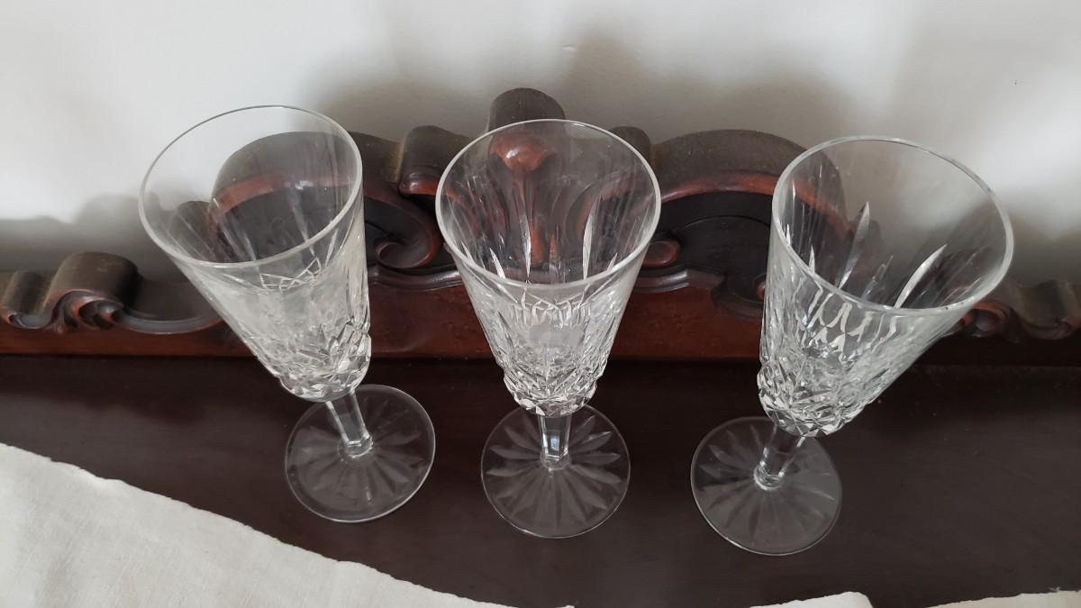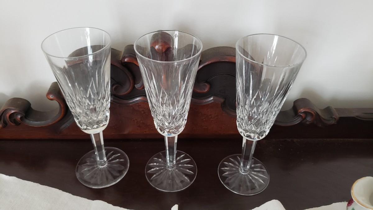 Three Waterford champagne glasses