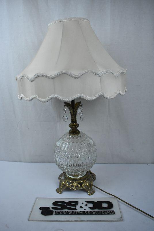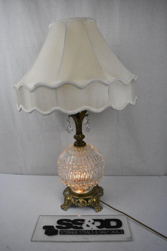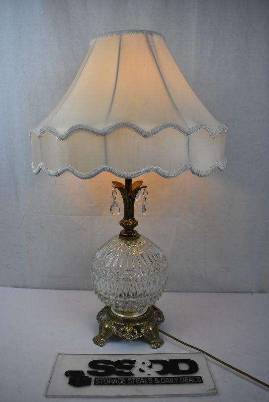3 Way Lamp WITH Lampshade. Glass & Brass, Works. Vintage