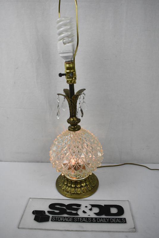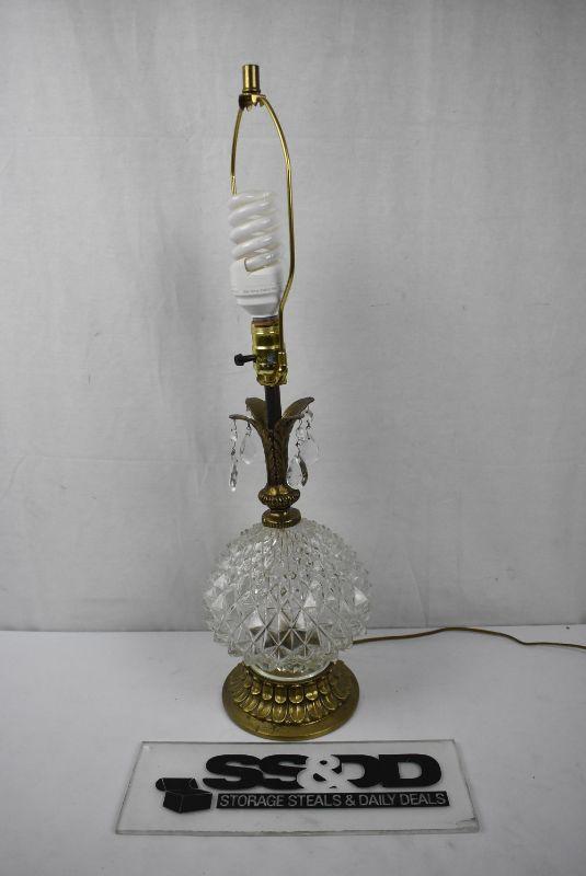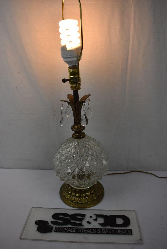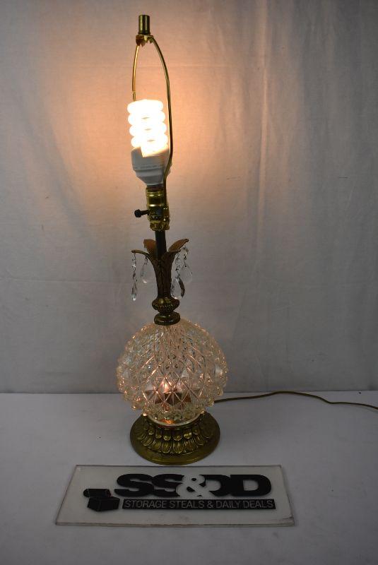 3 way Lamp with no lampshade. Glass & Brass, Works. Vintage