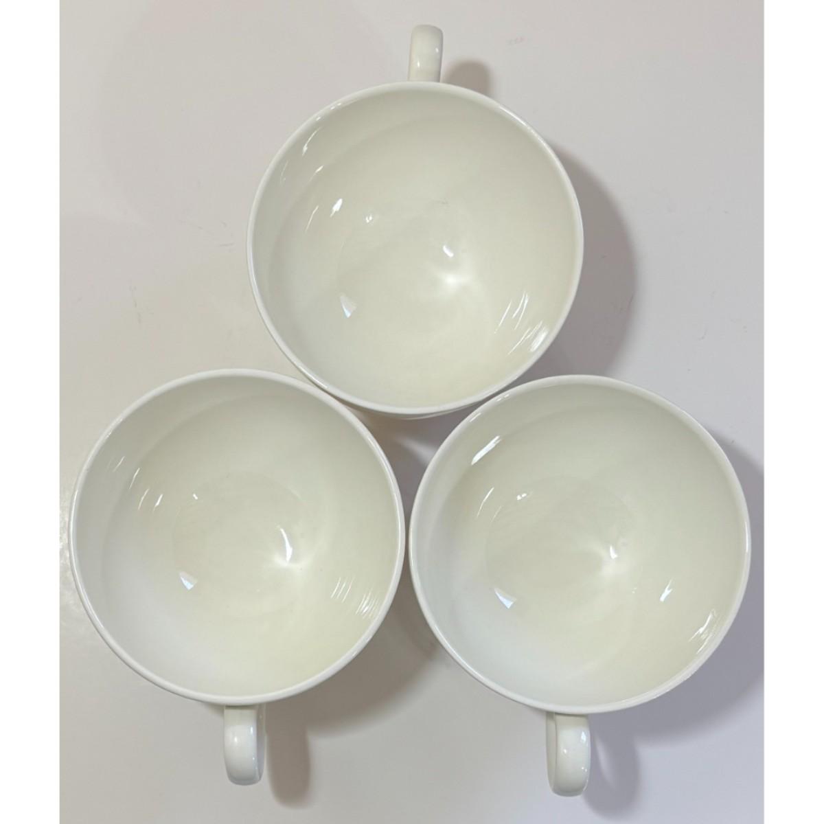 You get three teacups that are in good condition with minor surface wear. They have a 3.75" diameter at the rim, 1 7/8" diameter at the rim, and stand roughly 2.5" tall. Please see all pictures. Thank you for looking. As a reminder, if this is a lot, we do not break up lots. Also, all items are prepacked, so each item is sent individually. Any item that qualifies for media mail and weighs over one pound will be shipped via media mail. Otherwise, the item will be shipped USPS ground advantage, or UPS ground. Shipping for this item is $11.00. Items ship within two days after payment is received. Item SKU is MUG320.