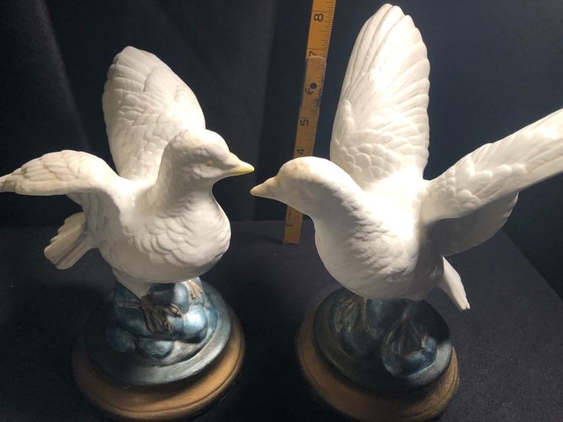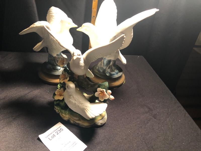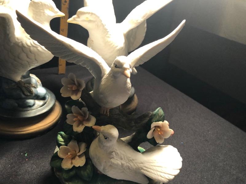 3 White Bird Figurines - 2 Kissing Doves, and one GEI 1997 White Birds