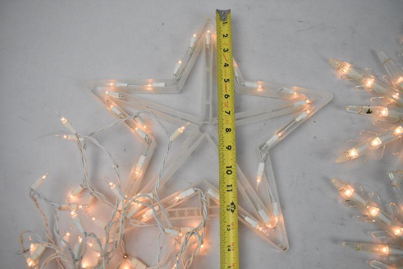 3 White Lit Stars: Large One is Connected to Strand the Twinkles, 2 on the Right are Conjoined - Tested, Work