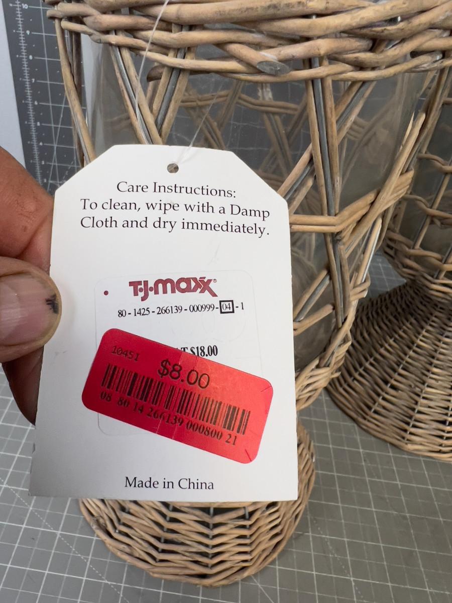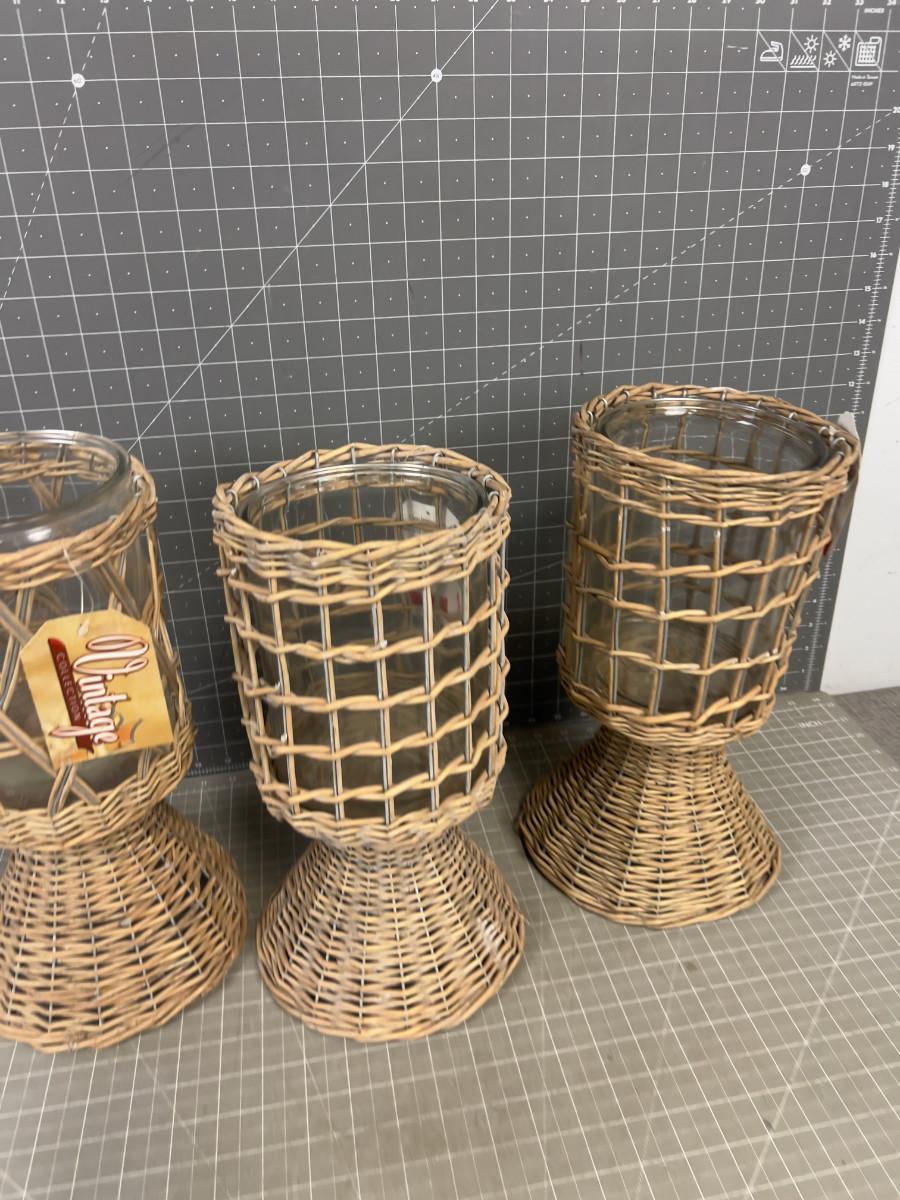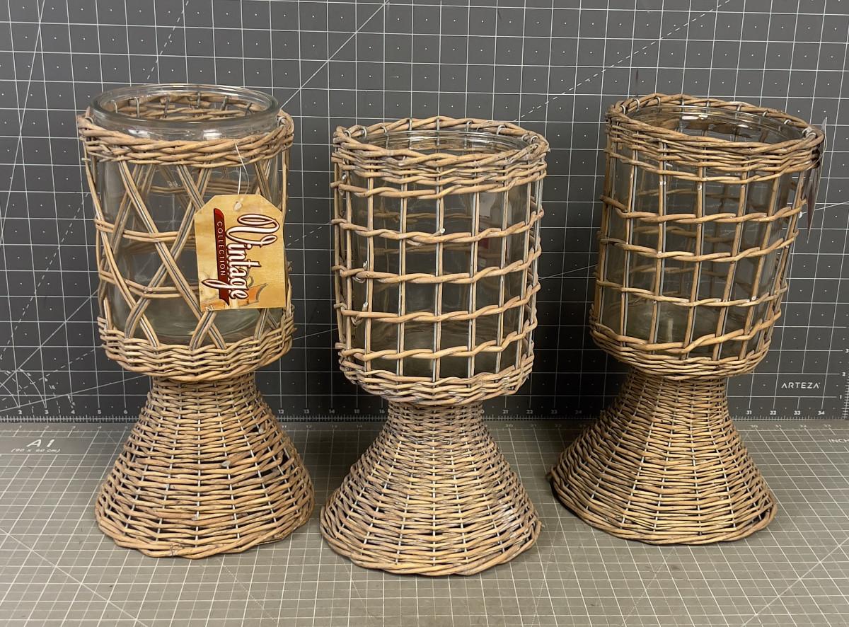 (3) Wicker Wrapped Vases or Candle Lanters NEW
