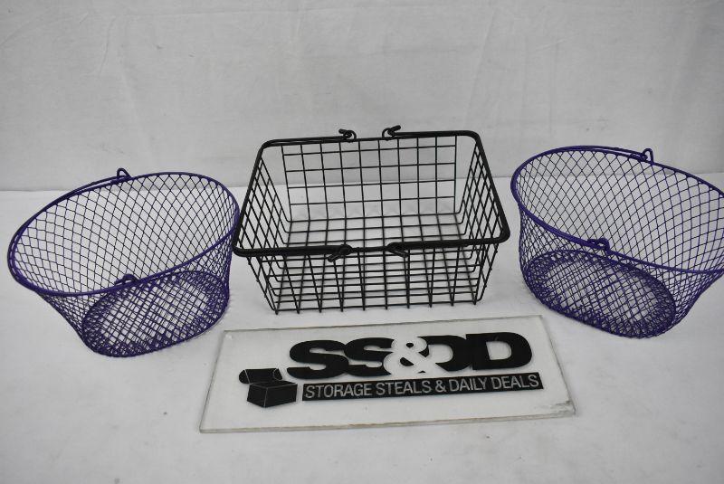 3 Wire Baskets: 1 black rectangle, 2 purple oval
