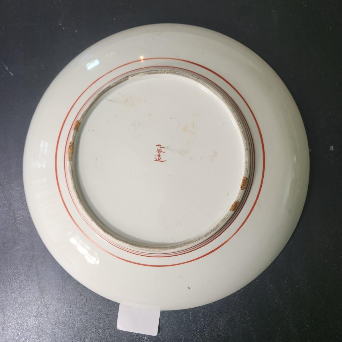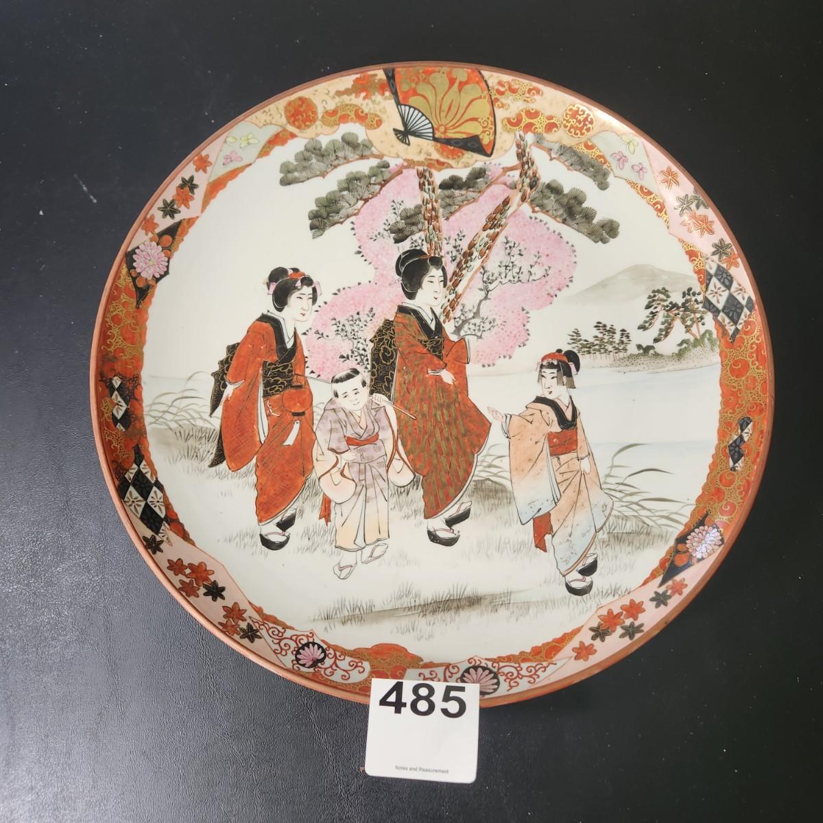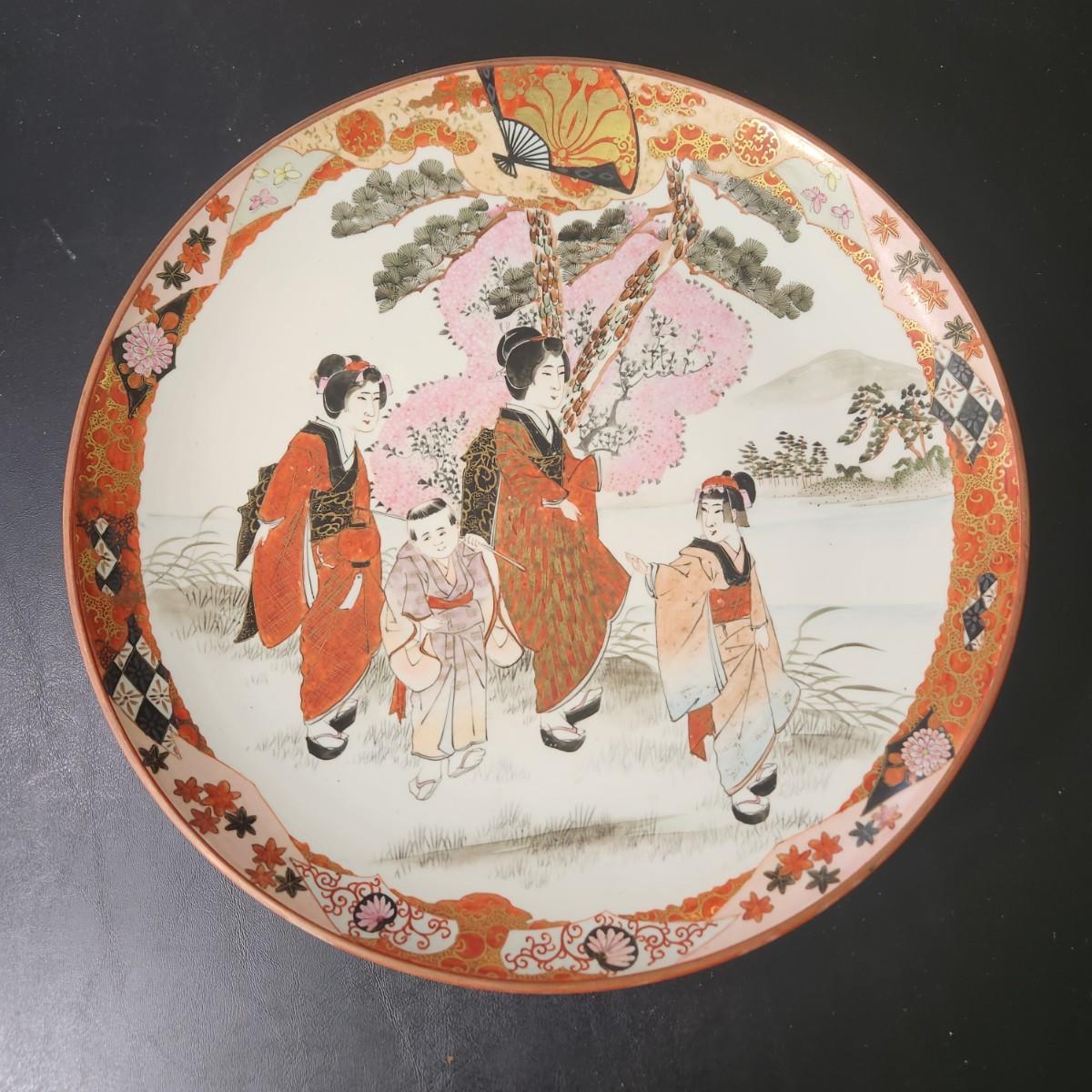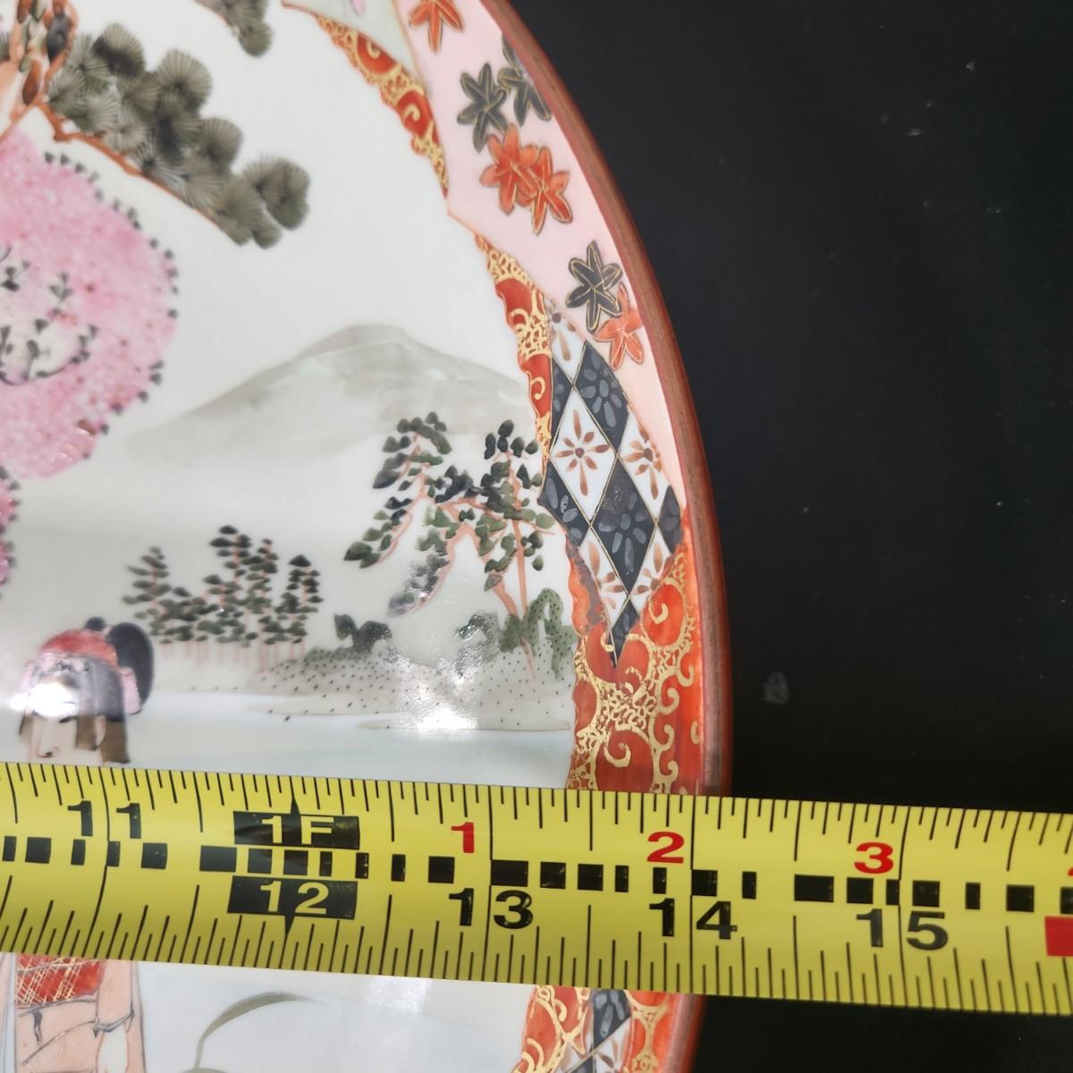 3  Women in Garden Mt. Fuji in Background Japanese Kutani  Plate Charger 14"