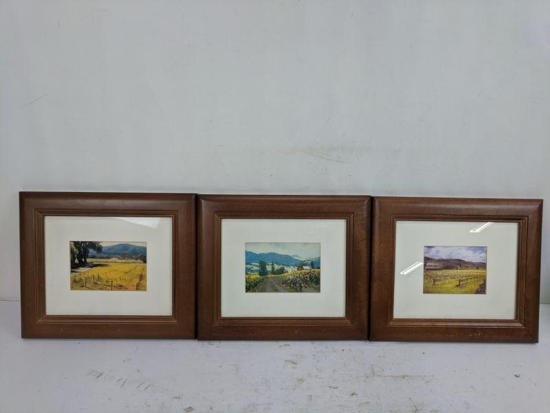 3 Wood Frame Scenery Pictures, 13" x 11"