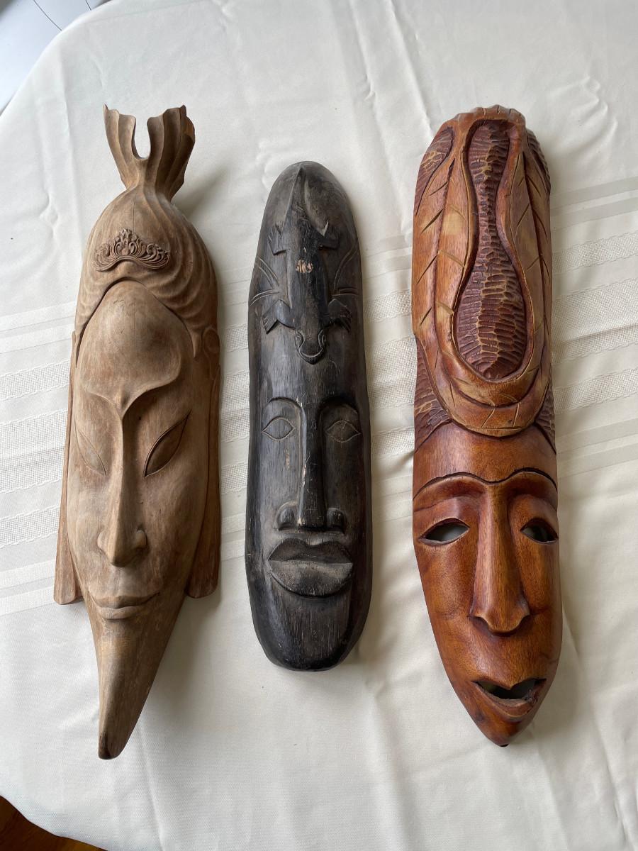 3 Wooden Carved Faces