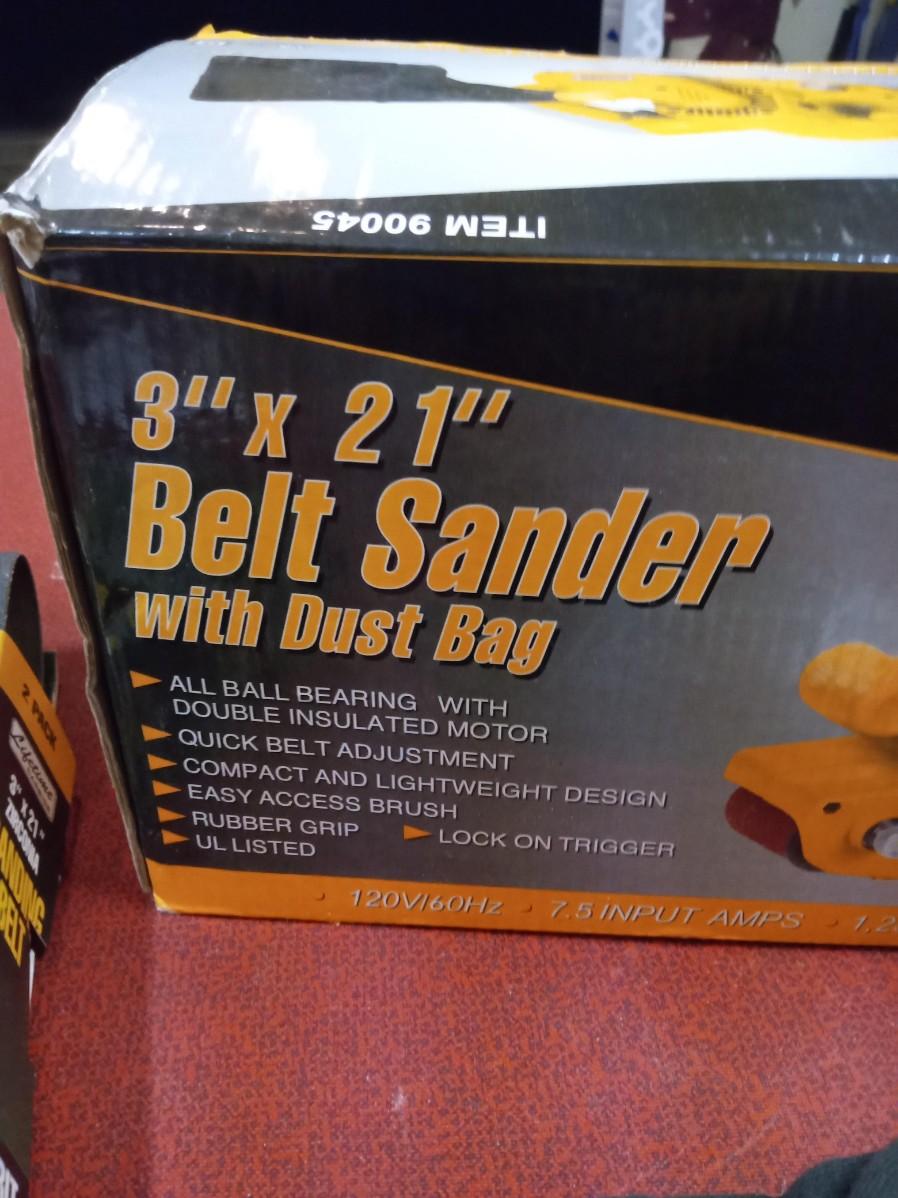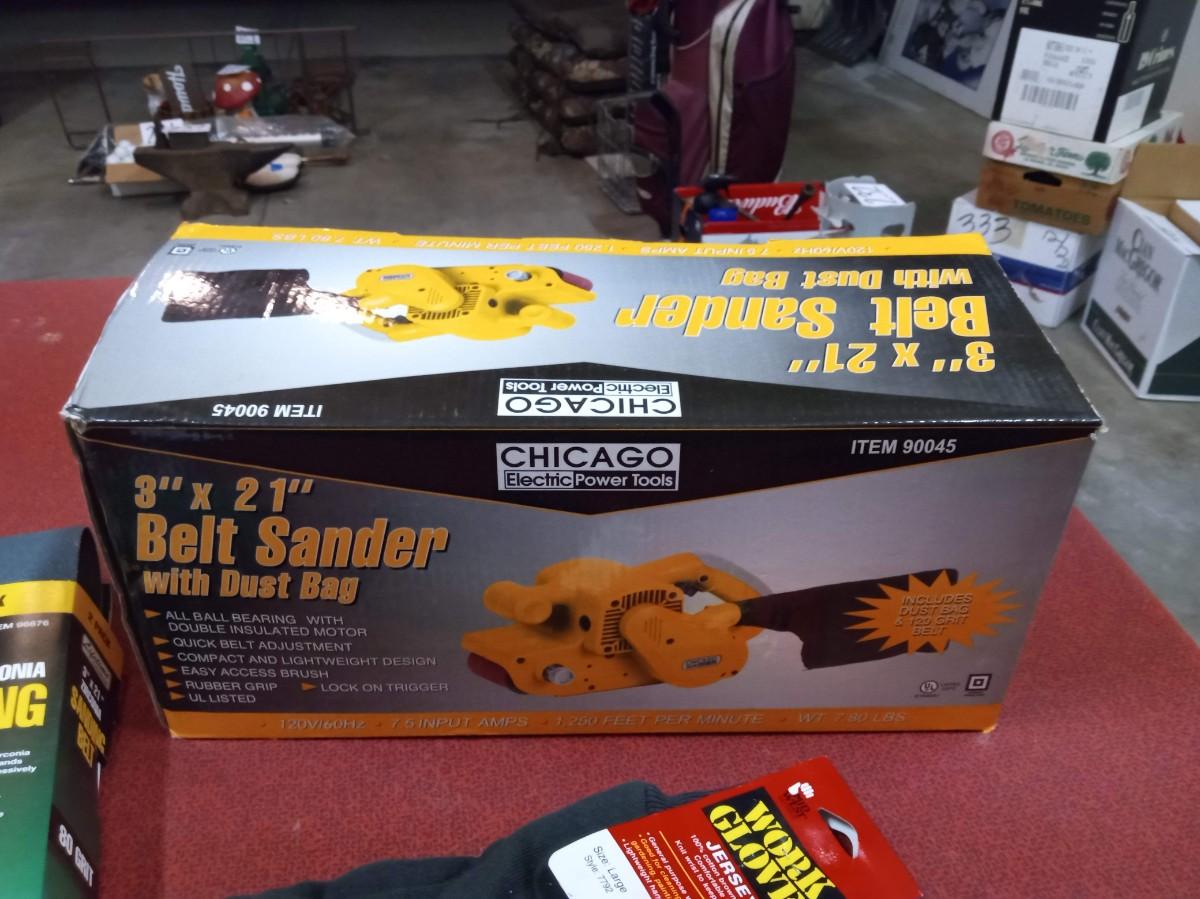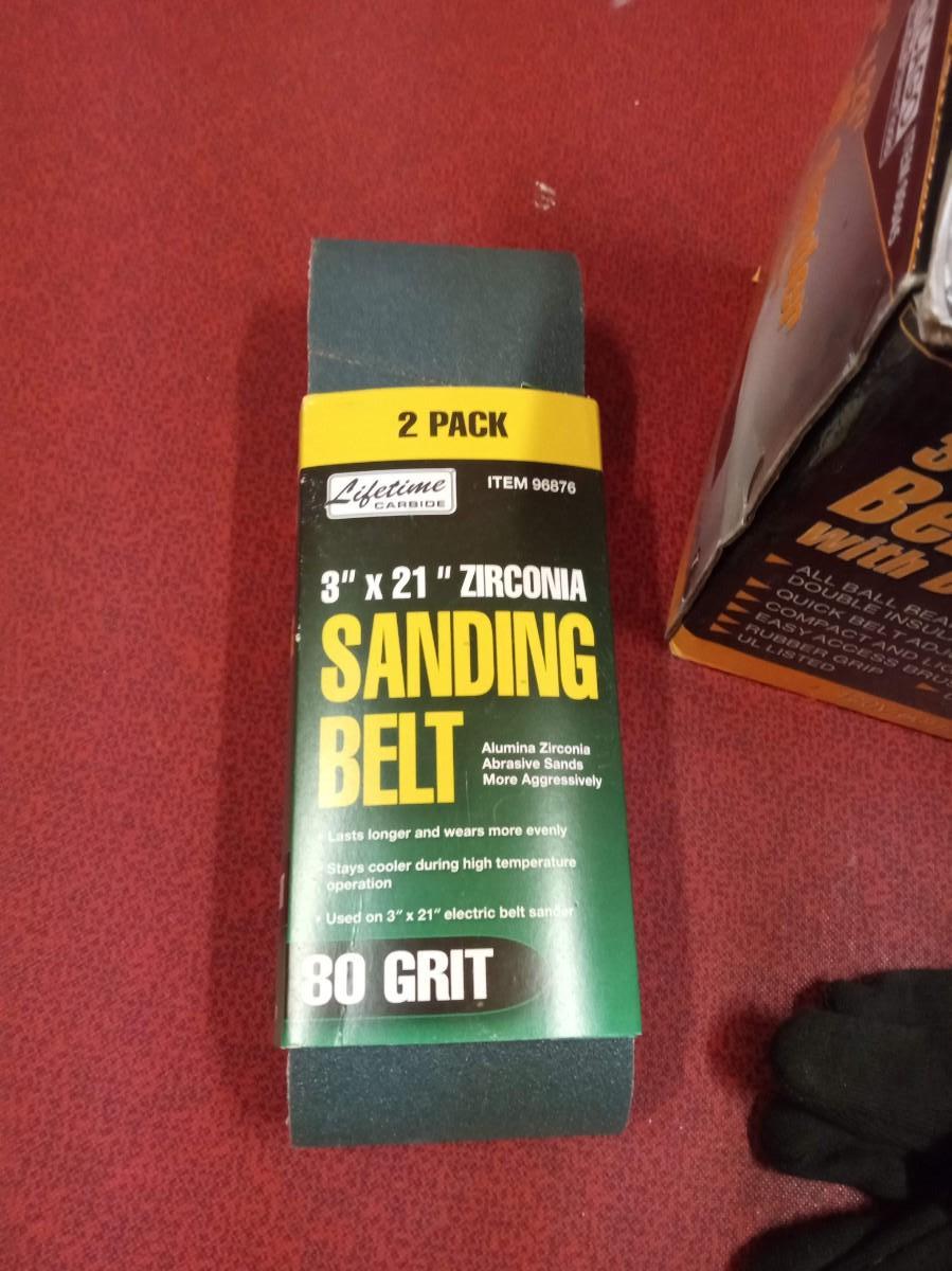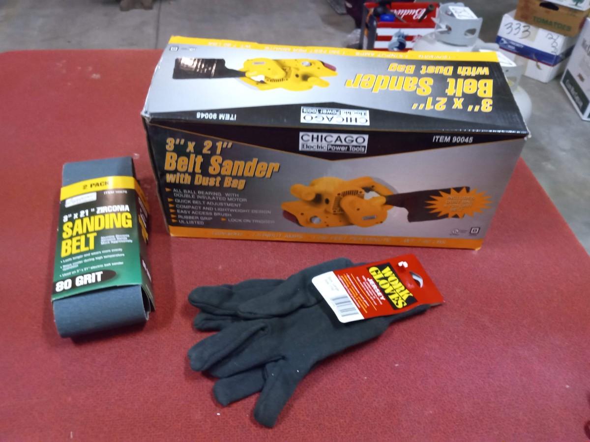 3" X 21" BELT SANDER W/DUST BAG, SANDING BELT AND GLOVES