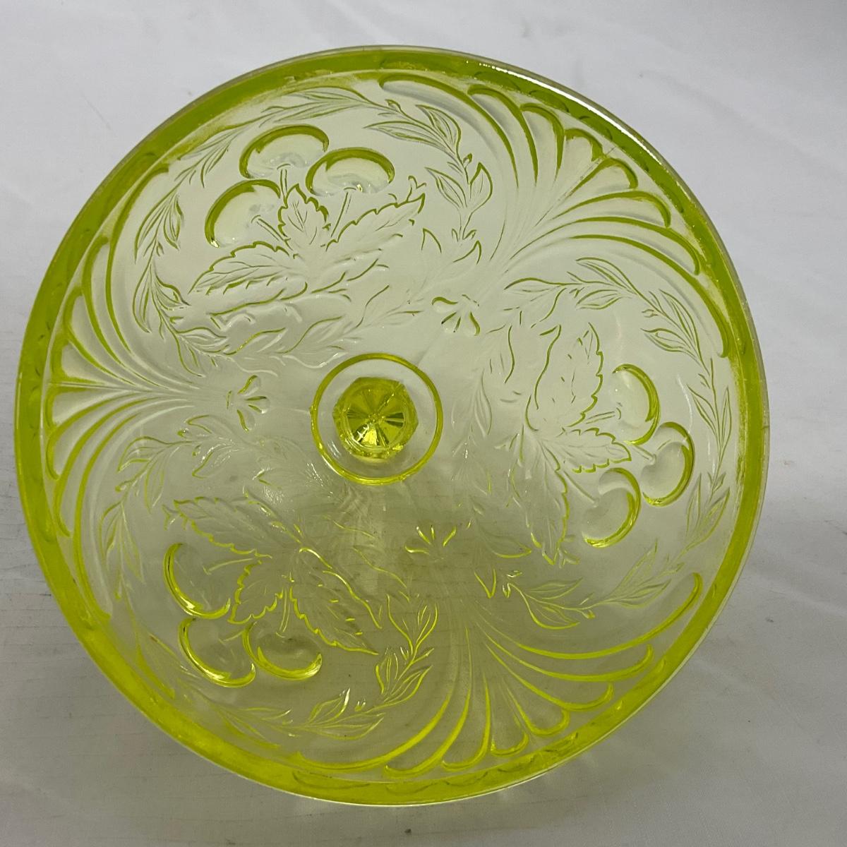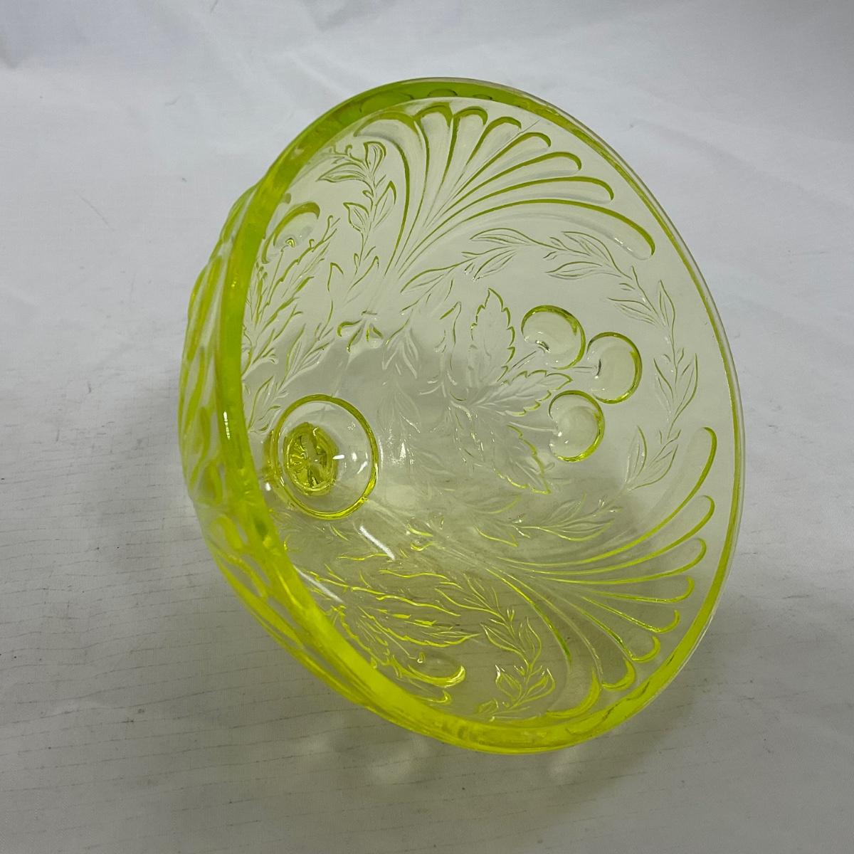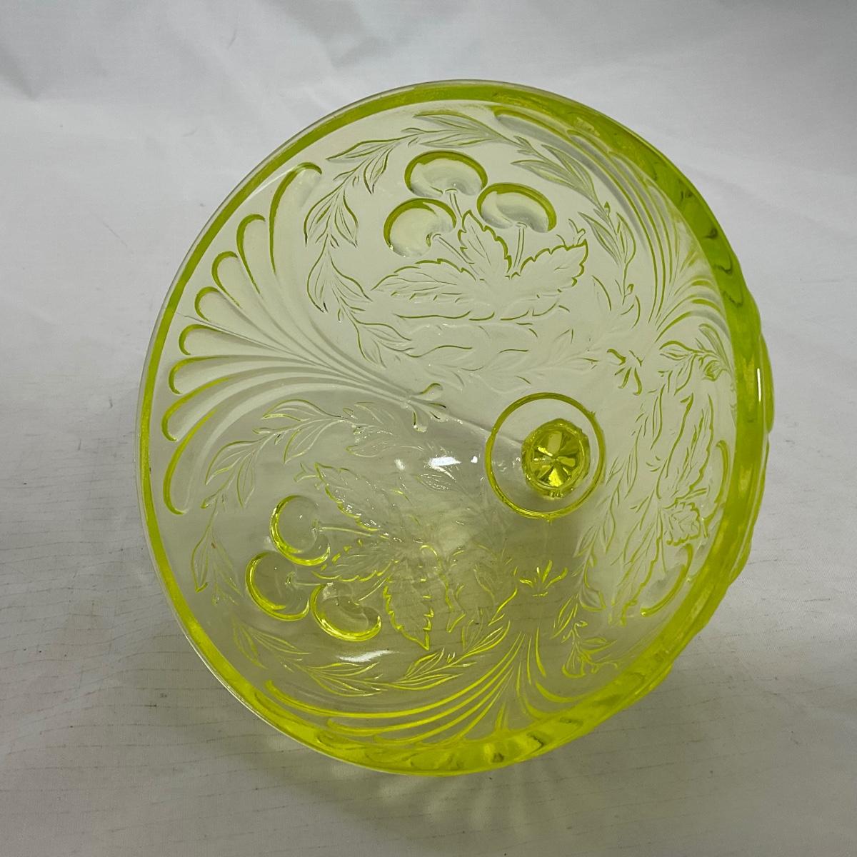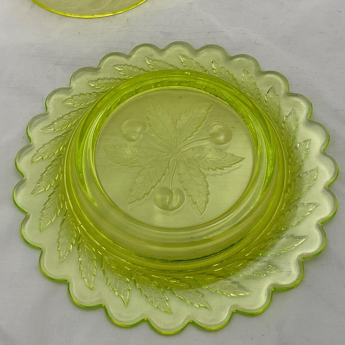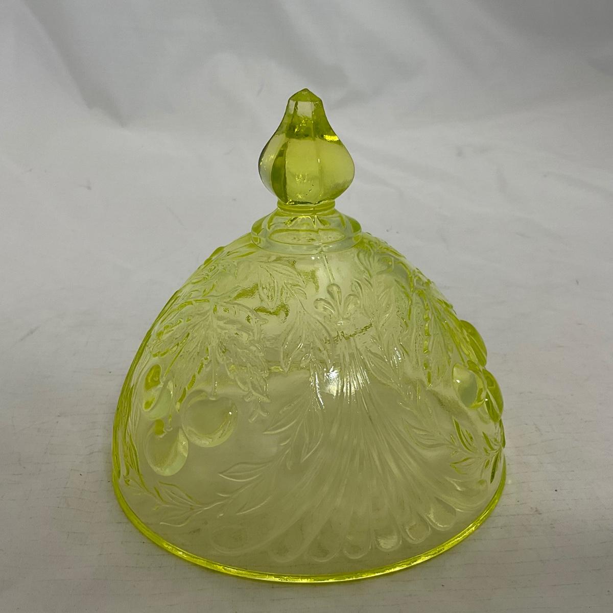 -3- Yellow Vaseline Covered Butter Dish | Cherries Pattern | Uranium Glass