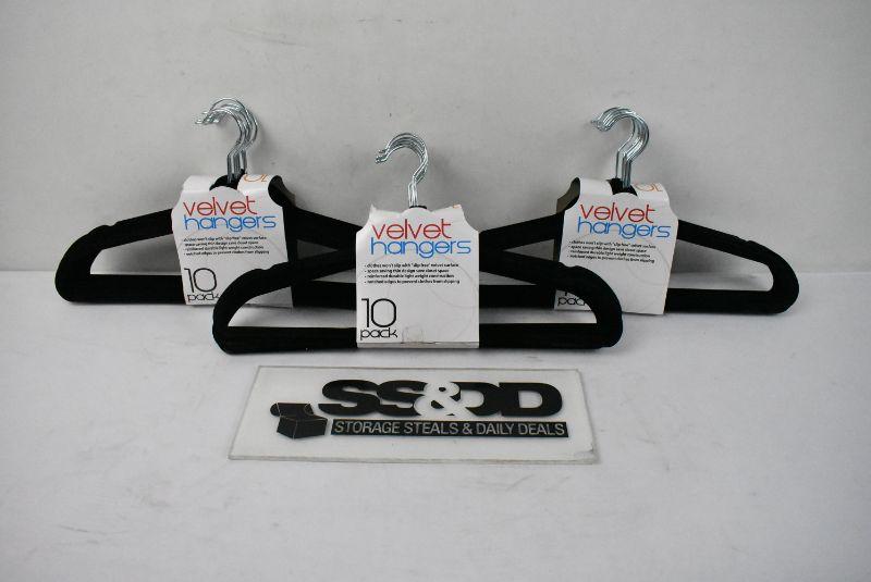 30 Black Velvet Hangers, 3 Packs of 10 - New