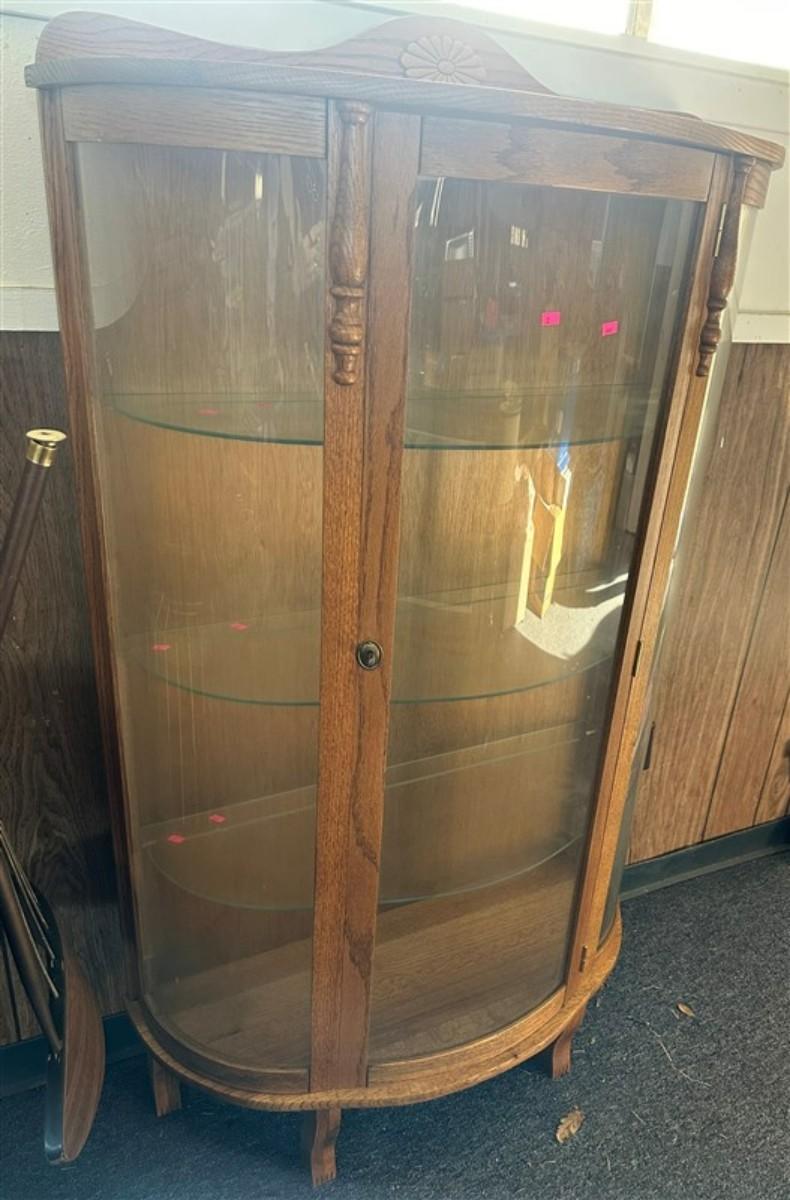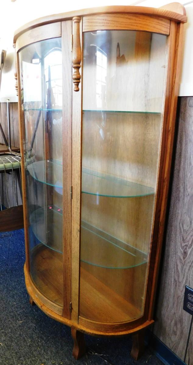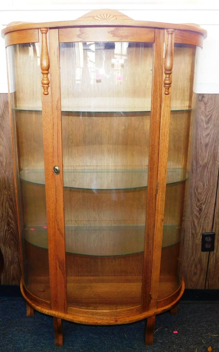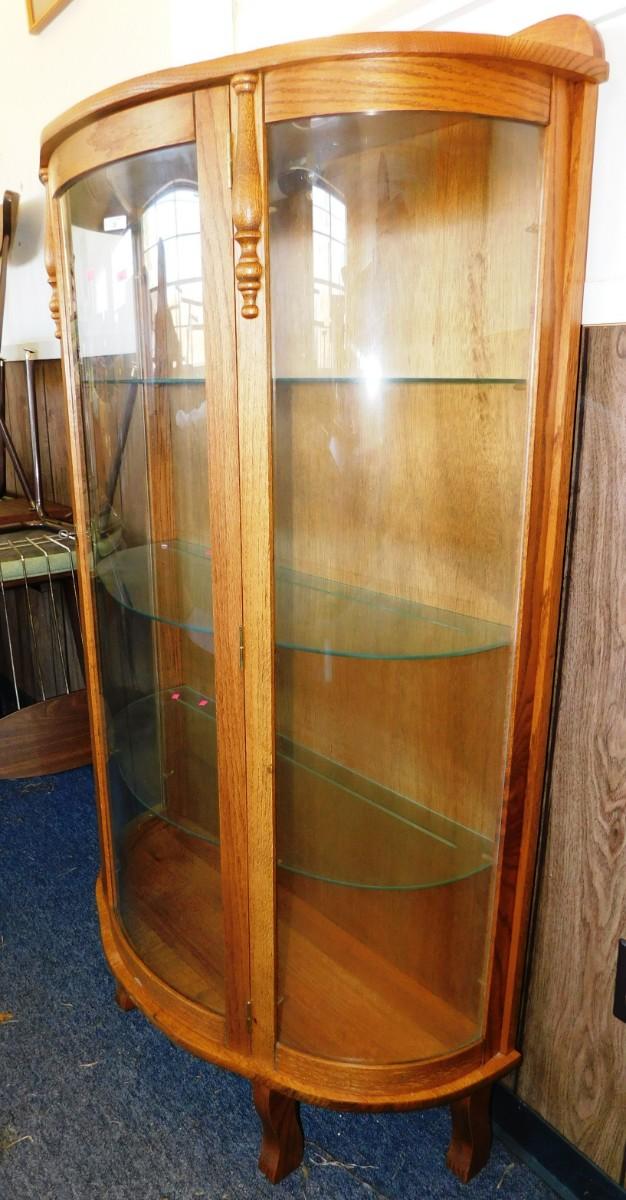 30 Bow Front Oak Curio Cabinet with 3 Glass Shelves 35x 13x 60