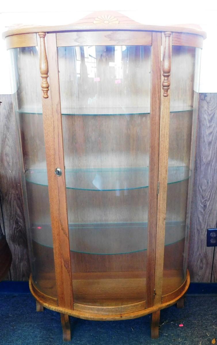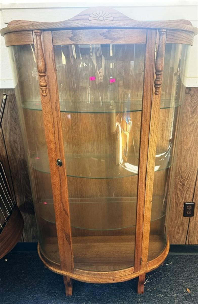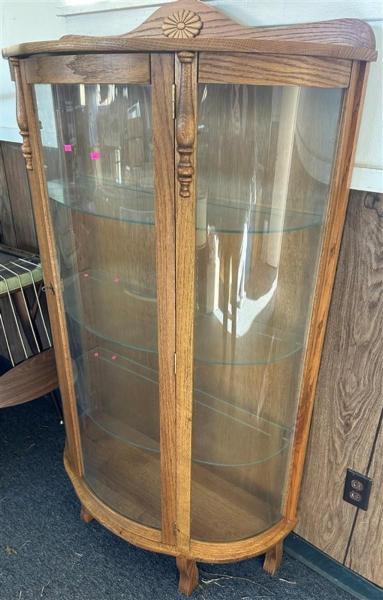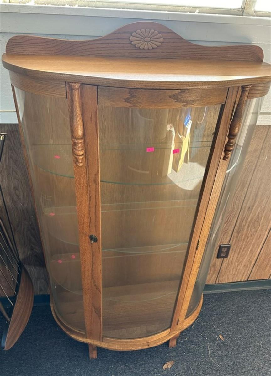 30 Bow Front Oak Curio Cabinet with 3 Glass Shelves 35x 13x 60