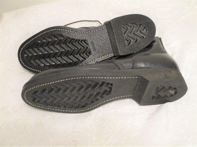 These non-sparking shoes have oil and jet fuel resistant soles and heels and protective steel toes, marked 9.5 R