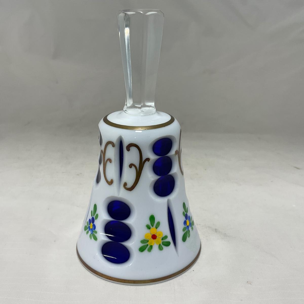 -30- Cobalt and Hand Painted | Cut Glass Bell
