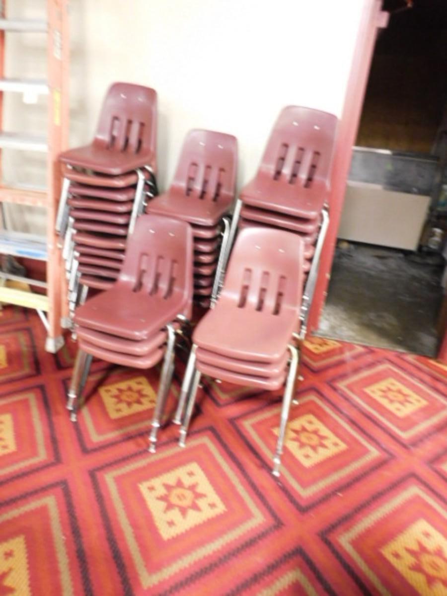 50 ct Virco Brand Commercial Chairs Hardshell Body with Vented Back and Metal Legs (SECC) Some chairs may have stress crack on seat. Expect some wear or scratches to finish. Shipping option available via freight or local mover at Buyer's expense. Buyer must have all shipping scheduled within the stated dates and times of pickup. Recommended local mover is Beaty Bros. Moving 828-201-2982
