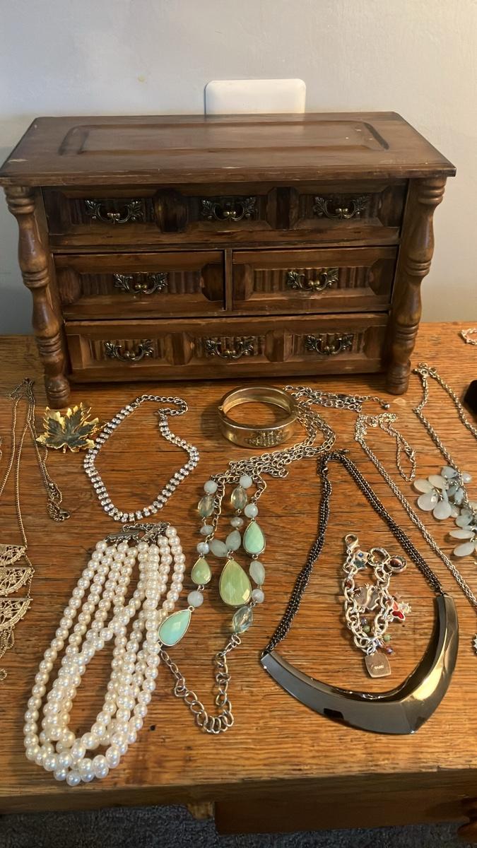 Vintage Costume Jewelry Collection – 30+ Pieces + Music Box – Pearls, Beads, Chains, Statement Necklaces – Excellent Condition!"