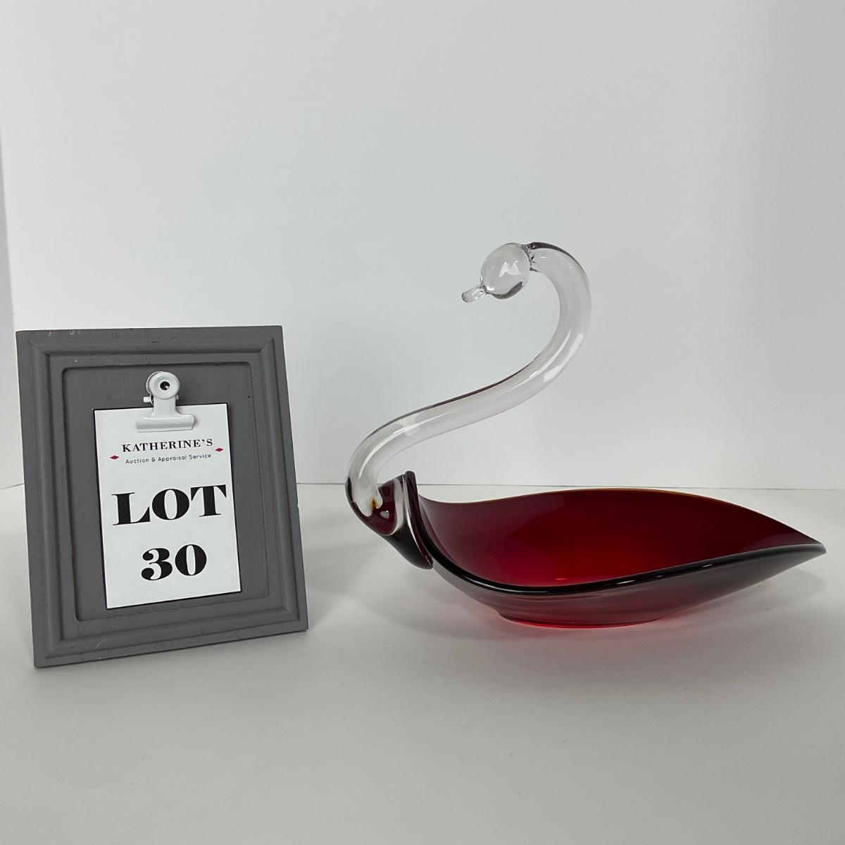 One Duncan Miller Red Swan 8 inches long by 6 inches tall. This piece has no damage, and appears to be in great shape with no visable chips, cracks, or broken pieces. Please see photos for details and condition. Any condition statement is given as a courtesy to a client, is an opinion, and should not be treated as a statement of fact. Reference to condition written, oral or within a condition report shall not be regarded as a full account of condition and may not include all defects, alterations, or restorations. Absence of a condition report does not imply a lot is flawless or lacking imperfections or damage. Katherine’s Auction & Appraisal Service shall have no responsibility for any error or omission. Returns shall not be accepted on the basis of condition. ::: Shipping is available on this lot. If you require shipping you must let us know at the close of the auction. We will coordinate with you after the item has been won. Shipping fees will include insurance up to or exceeding the value of all items being mailed. If you have any questions regarding this lot please contact the auctioneer either via this website, by direct email or by phone. PICK UP TIMES and other important information can be found in the TERMS and DESCRIPTION of the auction. Please take a look for pertinent information. Thanks!