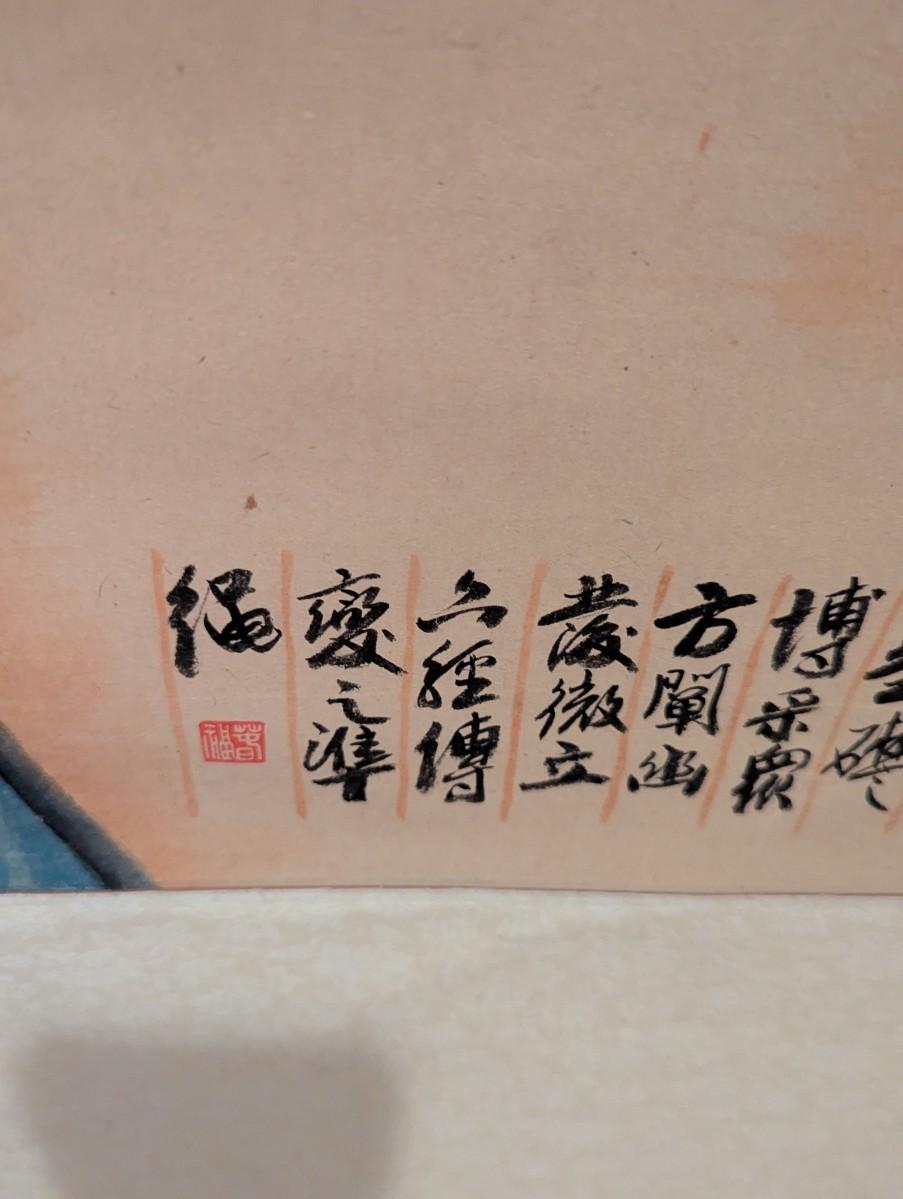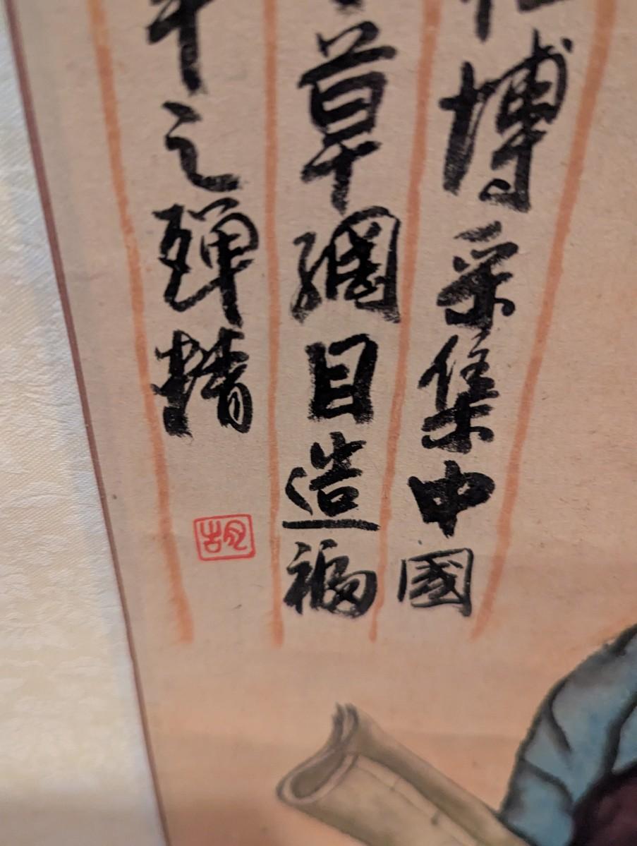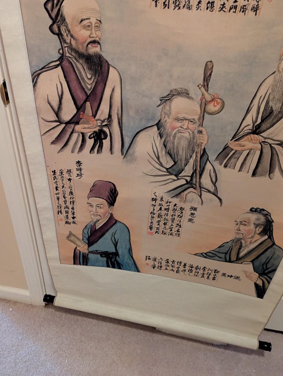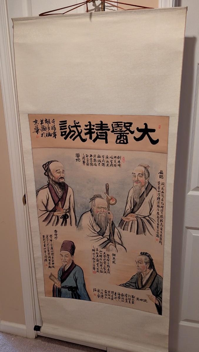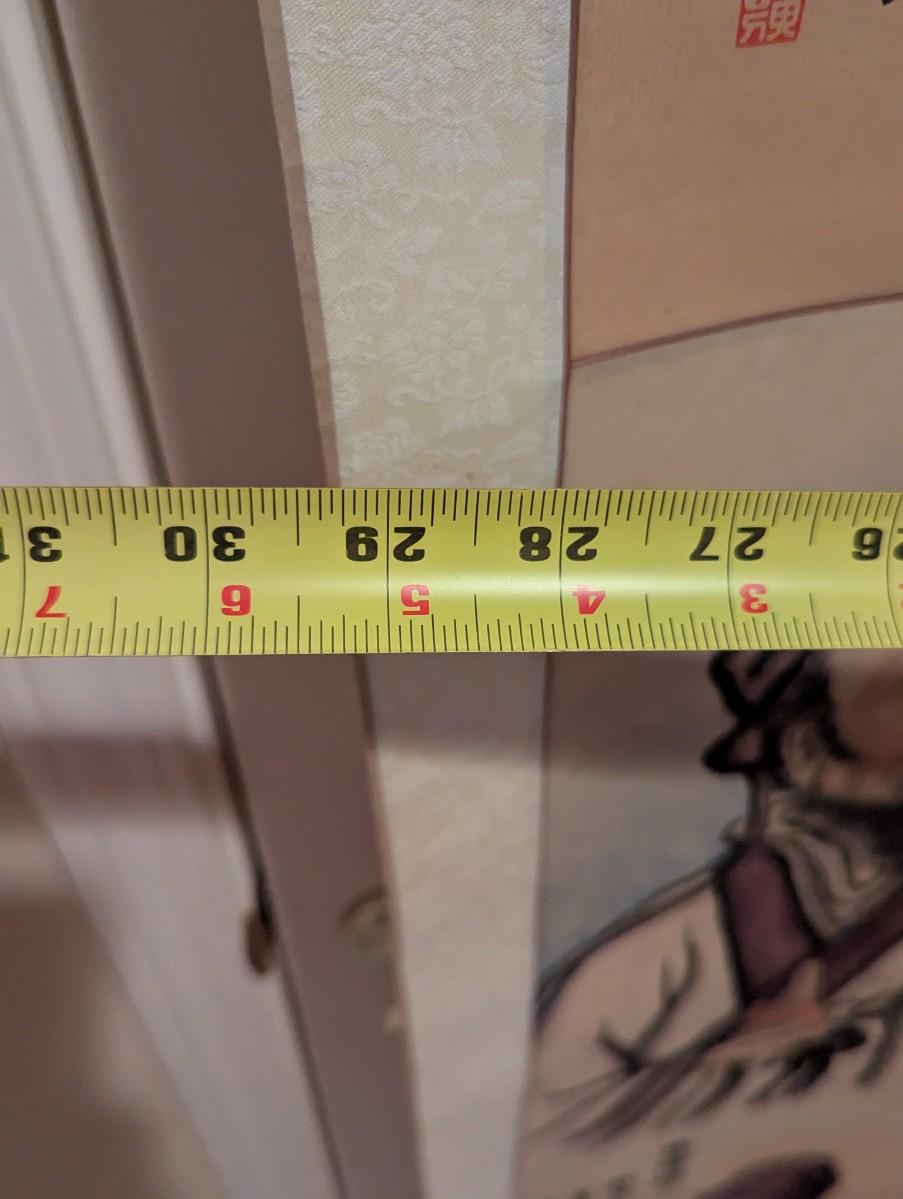 30" x 68" Antique Chinese Painting On Silk & Paper With Artist Mark & Calligraphy With Box
