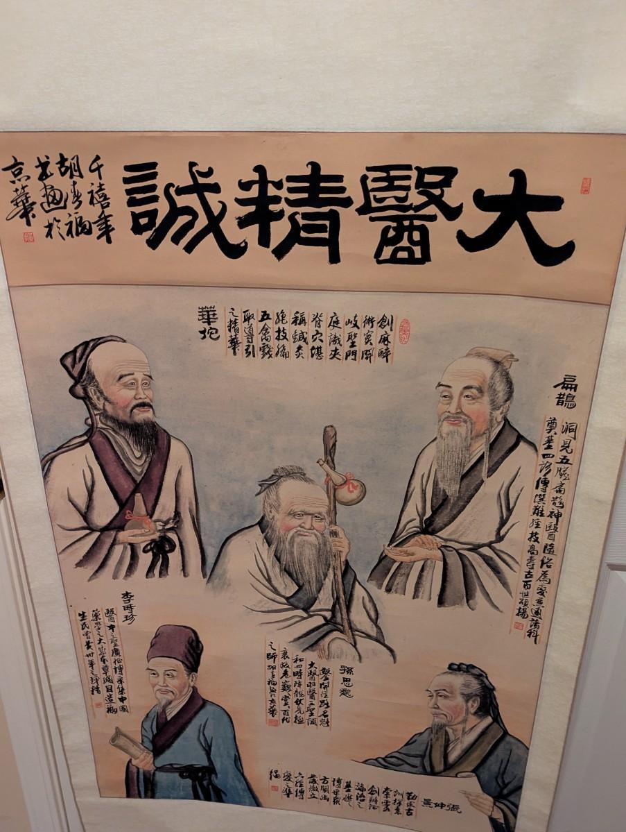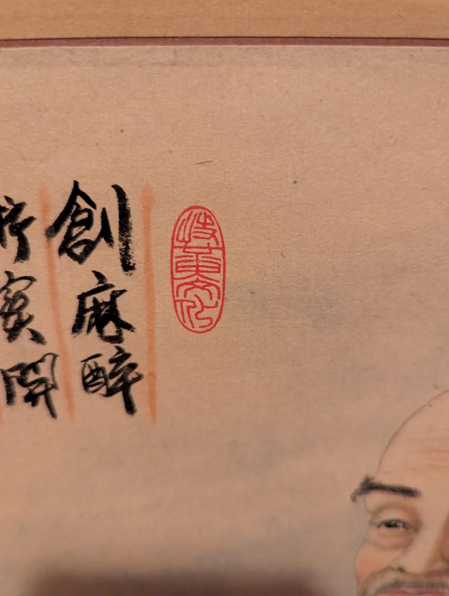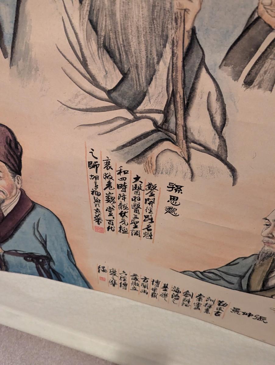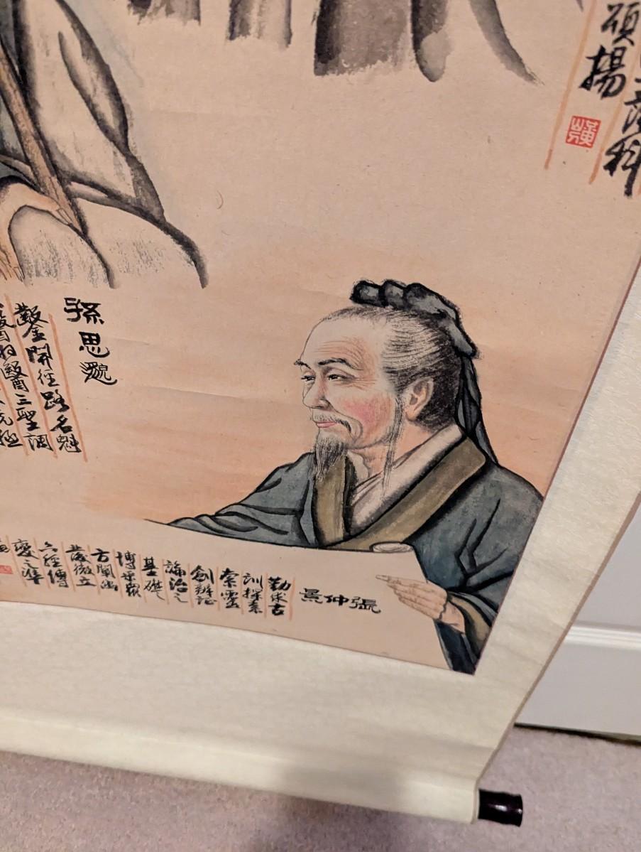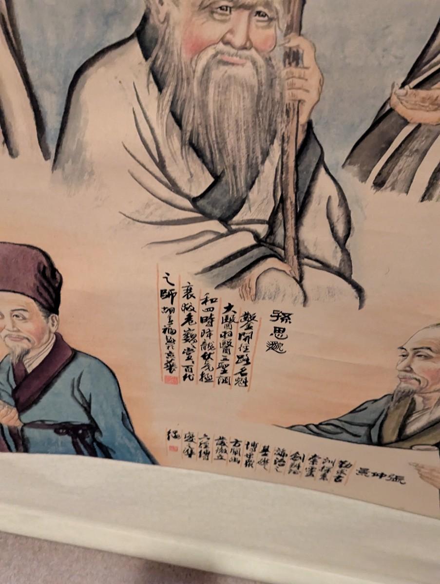 30" x 68" Antique Chinese Painting On Silk & Paper With Artist Mark & Calligraphy With Box