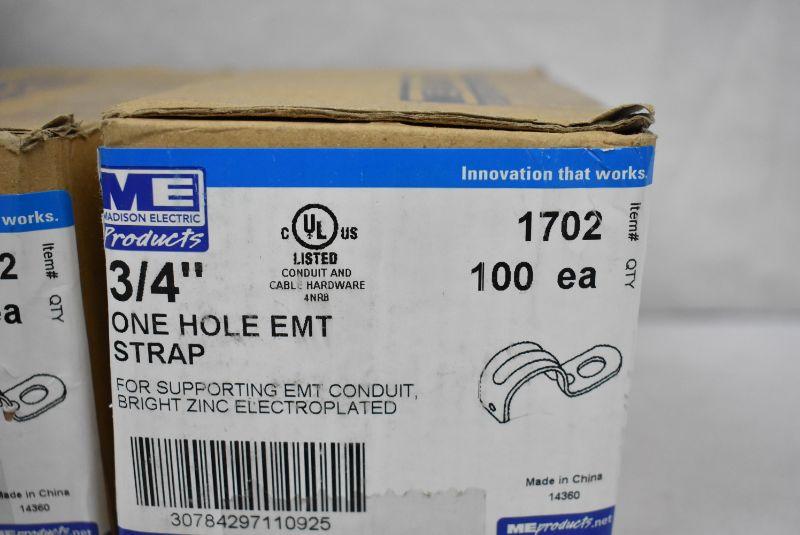 Madison Electric 3/4" One Hole EMT Conduit Strap, 1702, Zinc Plated - 3 Boxes of 100 each - New