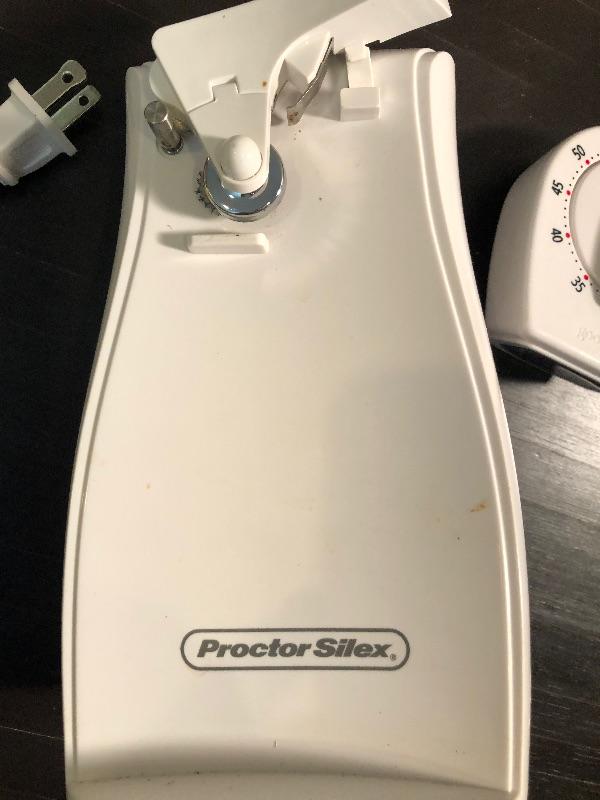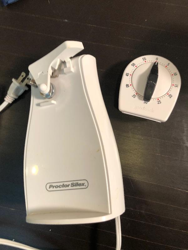 Can opener, Kitchen timer. Good used condition This is an ONSITE Auction all items will need to be picked up on location. Please see auction description for pick up procedures. Shipping is available on smaller items.