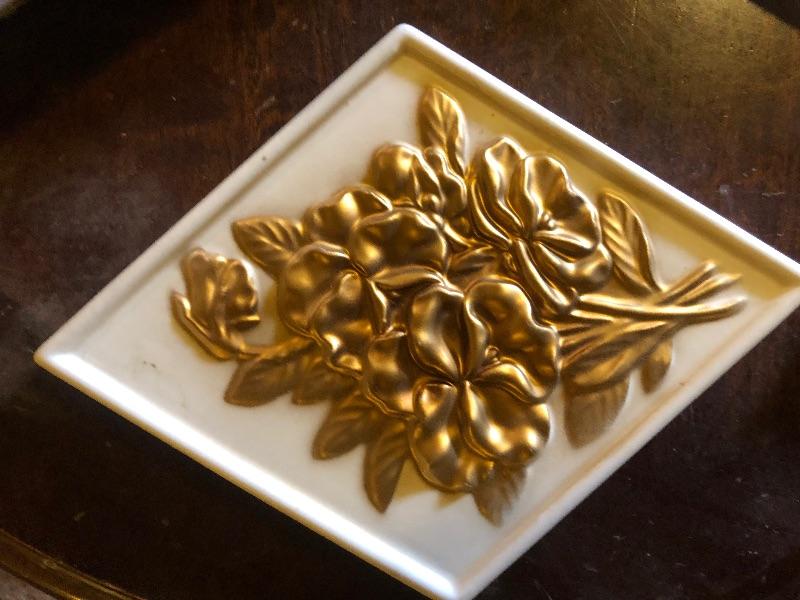 Ceramic wall Decor with flowers pansies roses daisies and happy light weight glass measures 8 x 6. Great condition. This is an ONSITE Auction all items will need to be picked up on location. Please see auction description for pick up procedures.
