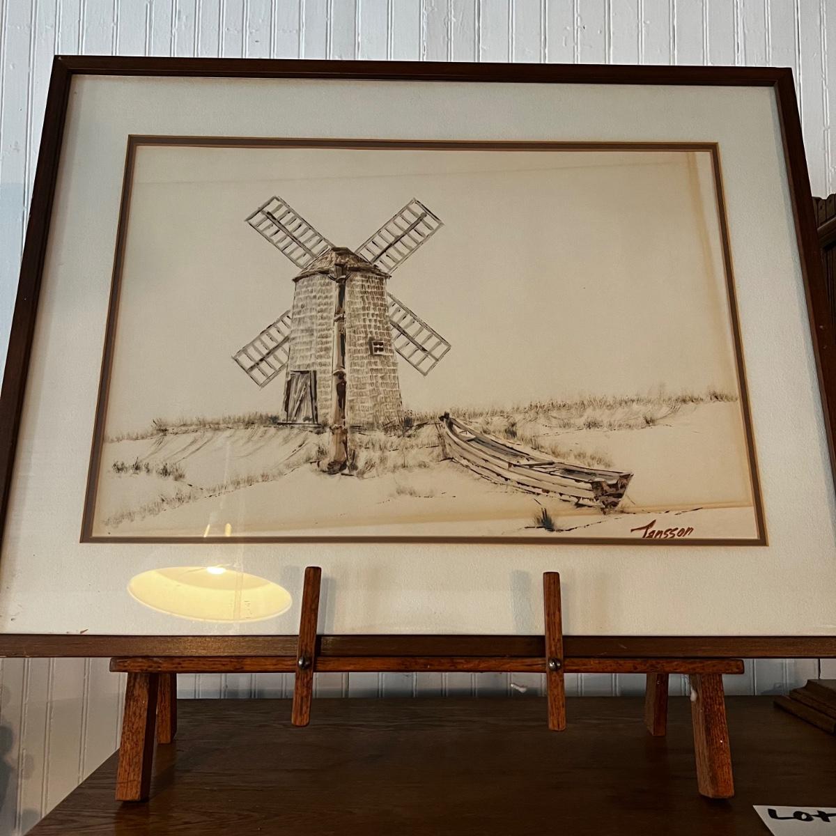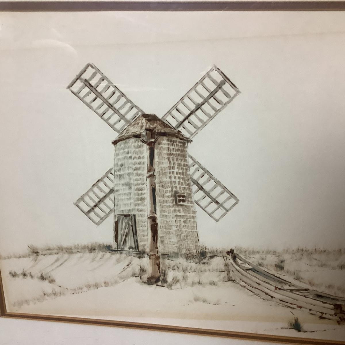 N301 Original Watercolor "Windmill" with Tabletop Easel