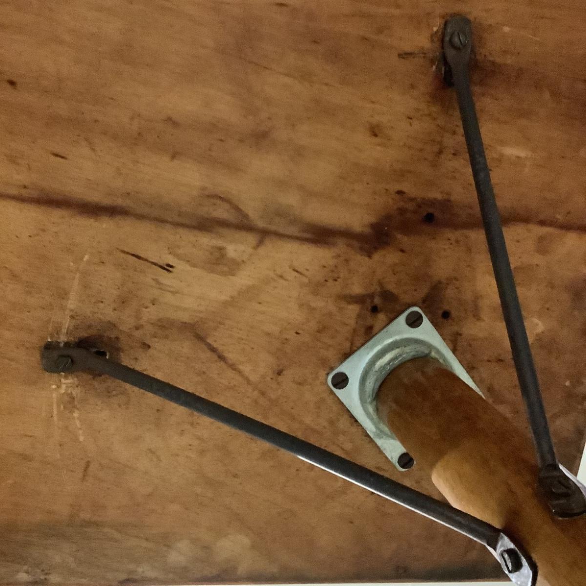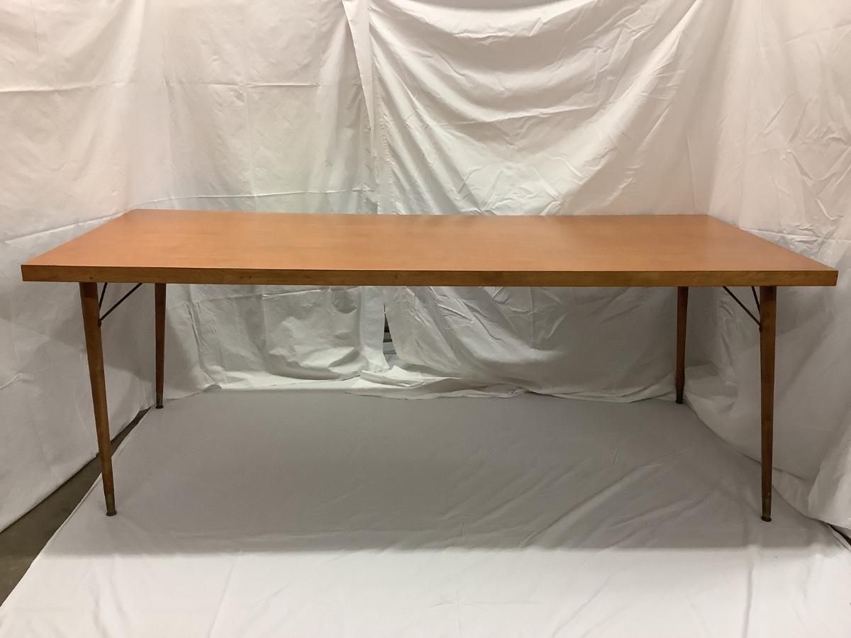 Mid Century Dining Table with Wood Legs and Brass Feet.
