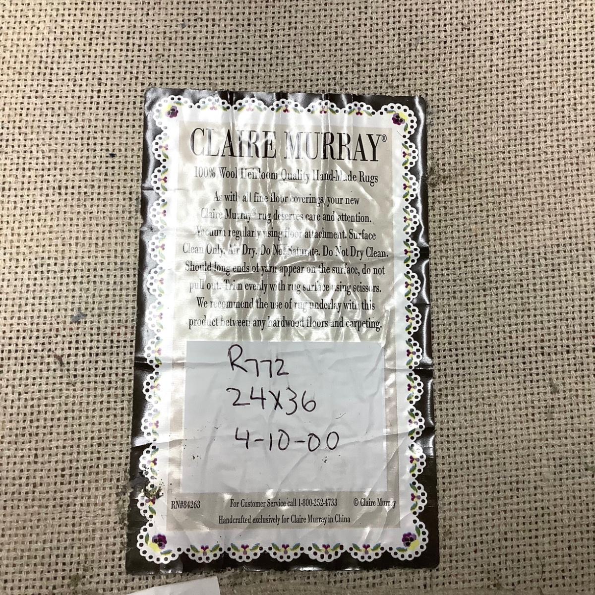 The rug is in excellent condition, measures 24" x 36". It is dated 2000 and is rug number R772. Hand Hooked.
