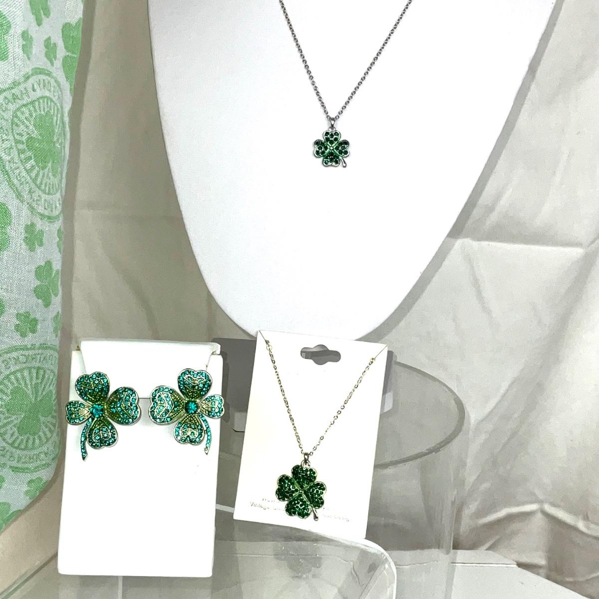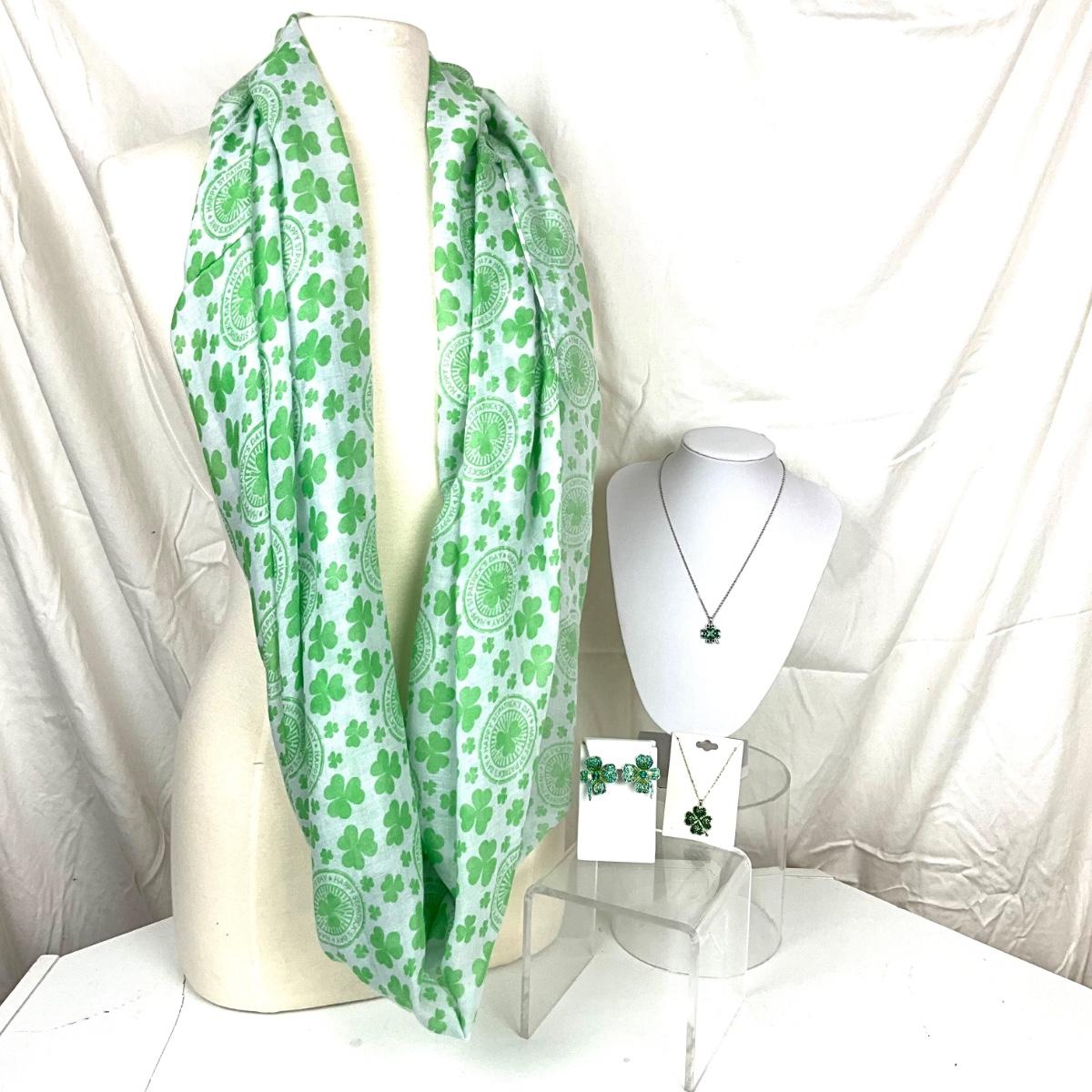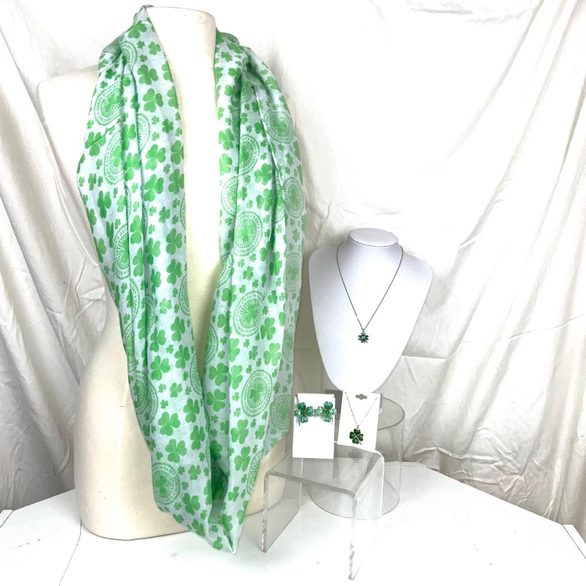 302 Shamrocks Infinity Scarf with Two Shamrock Necklaces and Earrings