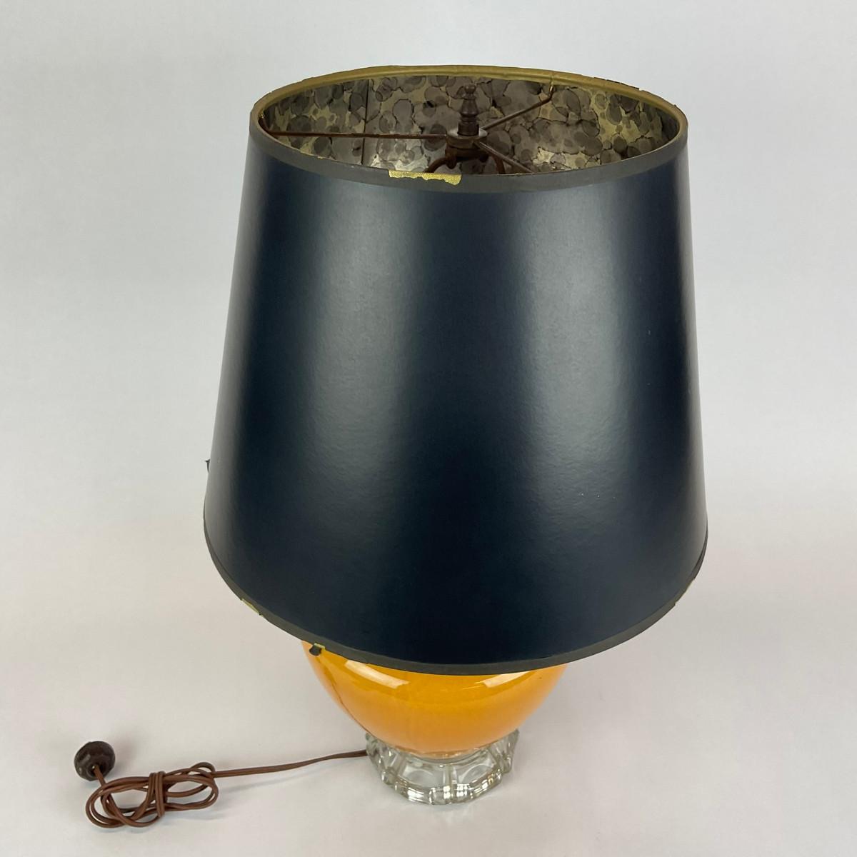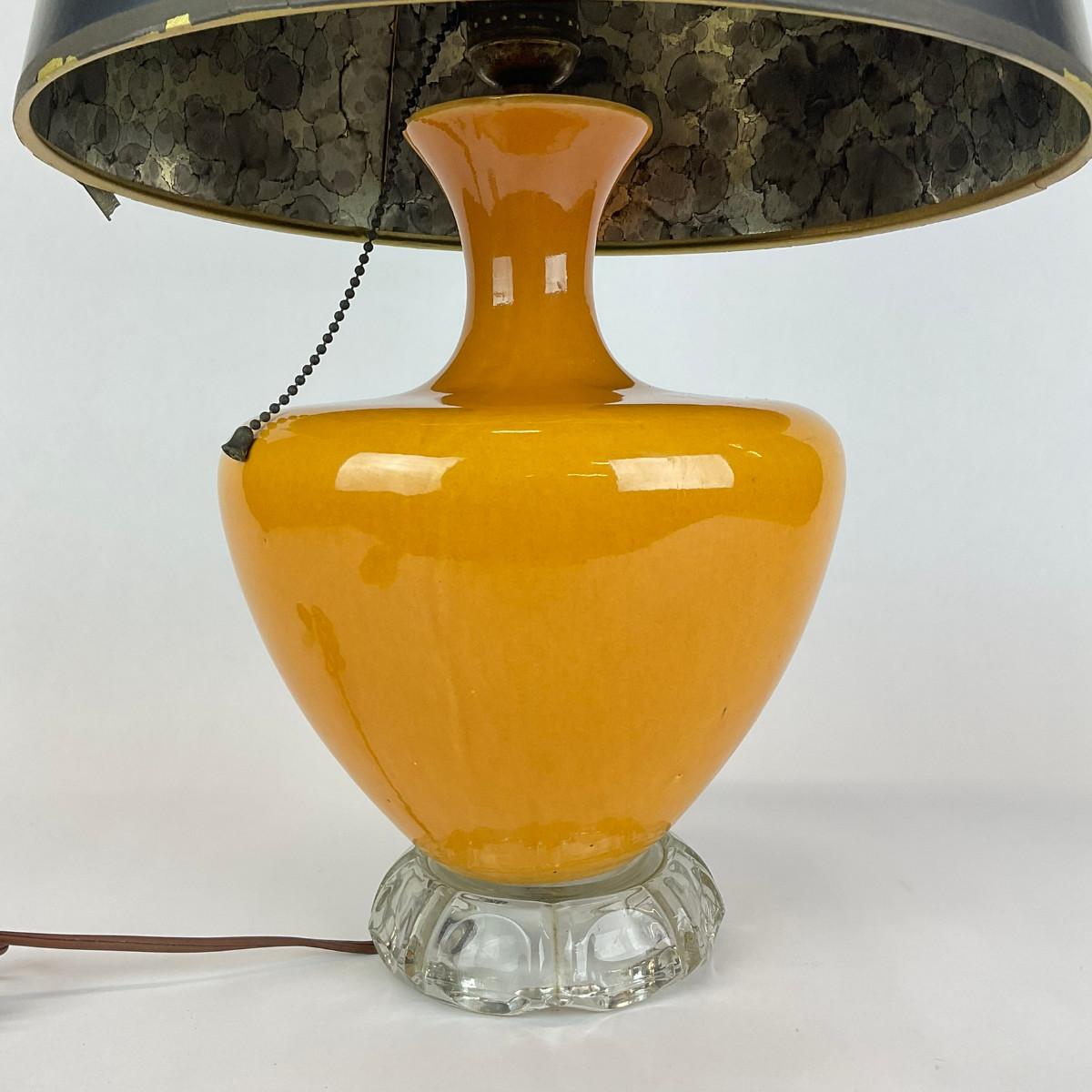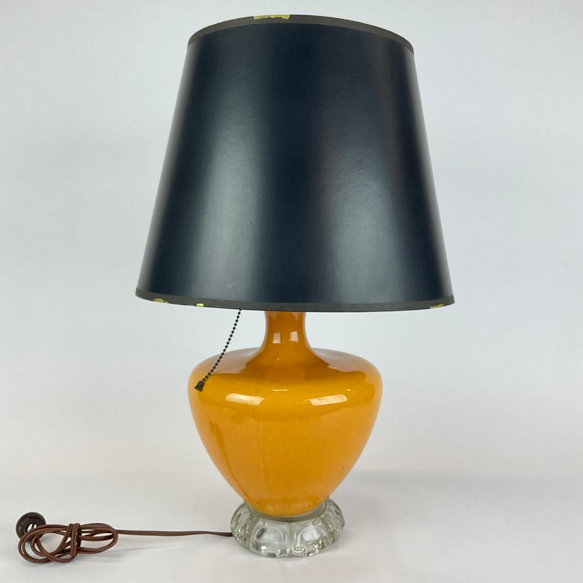302 Yellow Table Lamp With Glass Base With Black & Gold Shade
