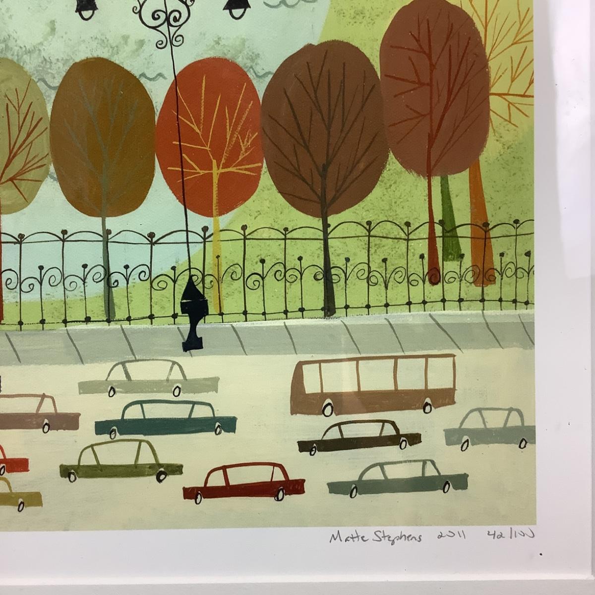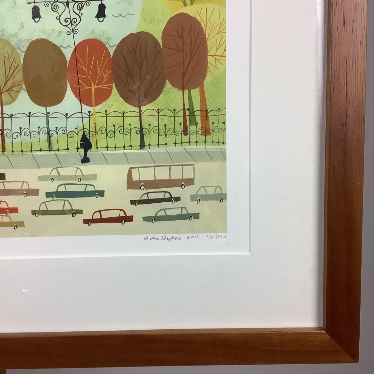 Matte Stephens Gouache Print "Central Park" Signed & Numbered #42/100. Framed and Matted.