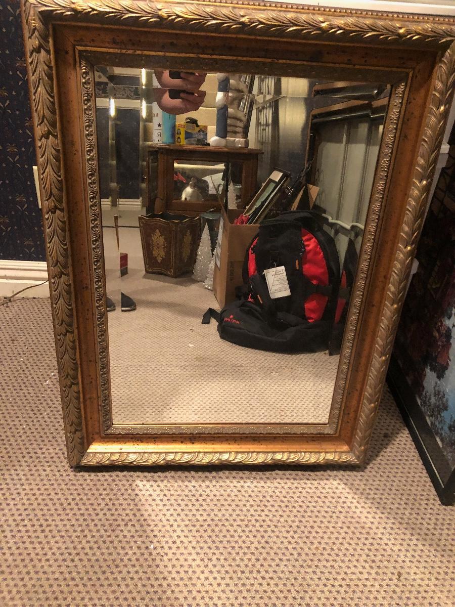 #303 Beautiful ornate mirror gold and copper colored measures 24 x 32 heavy