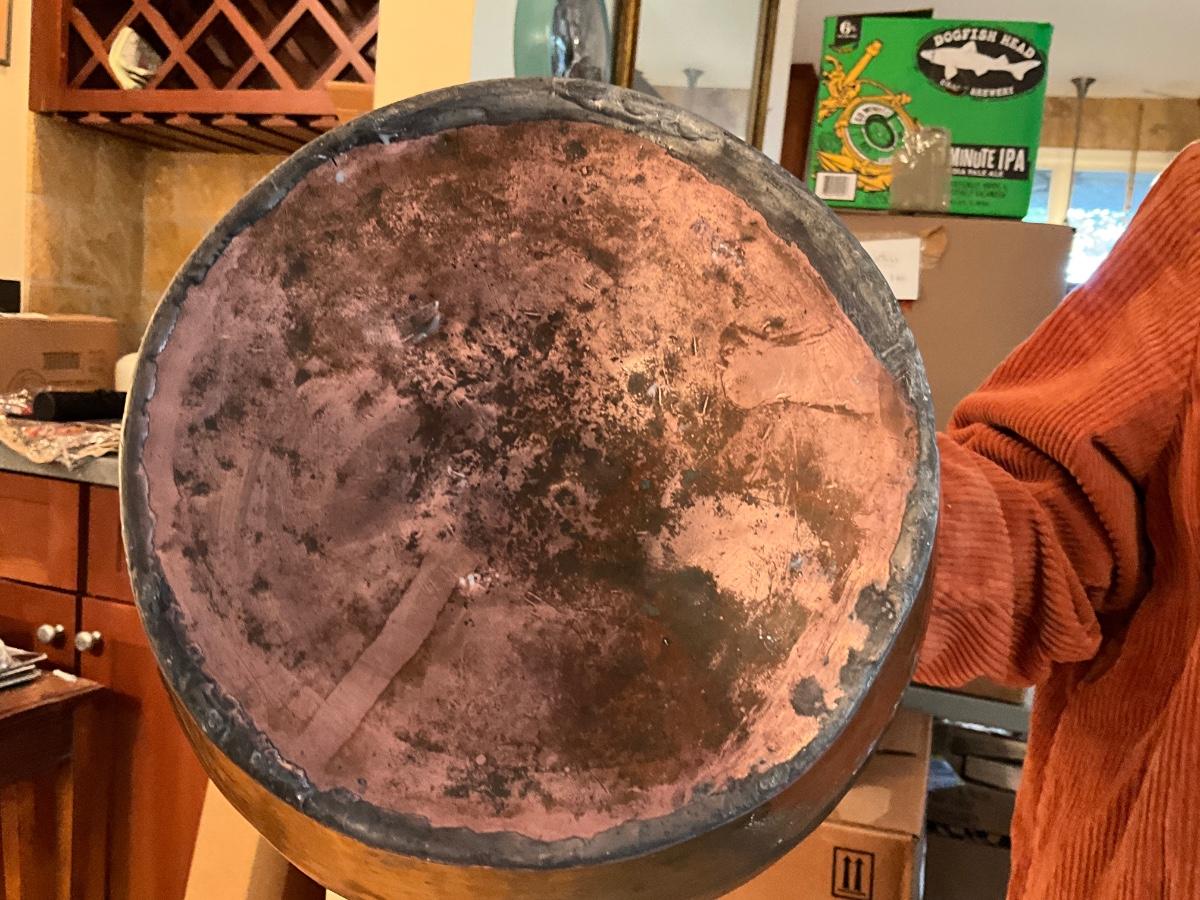 Large 10" diameter x 9" high brass with copper bottom has been repaired