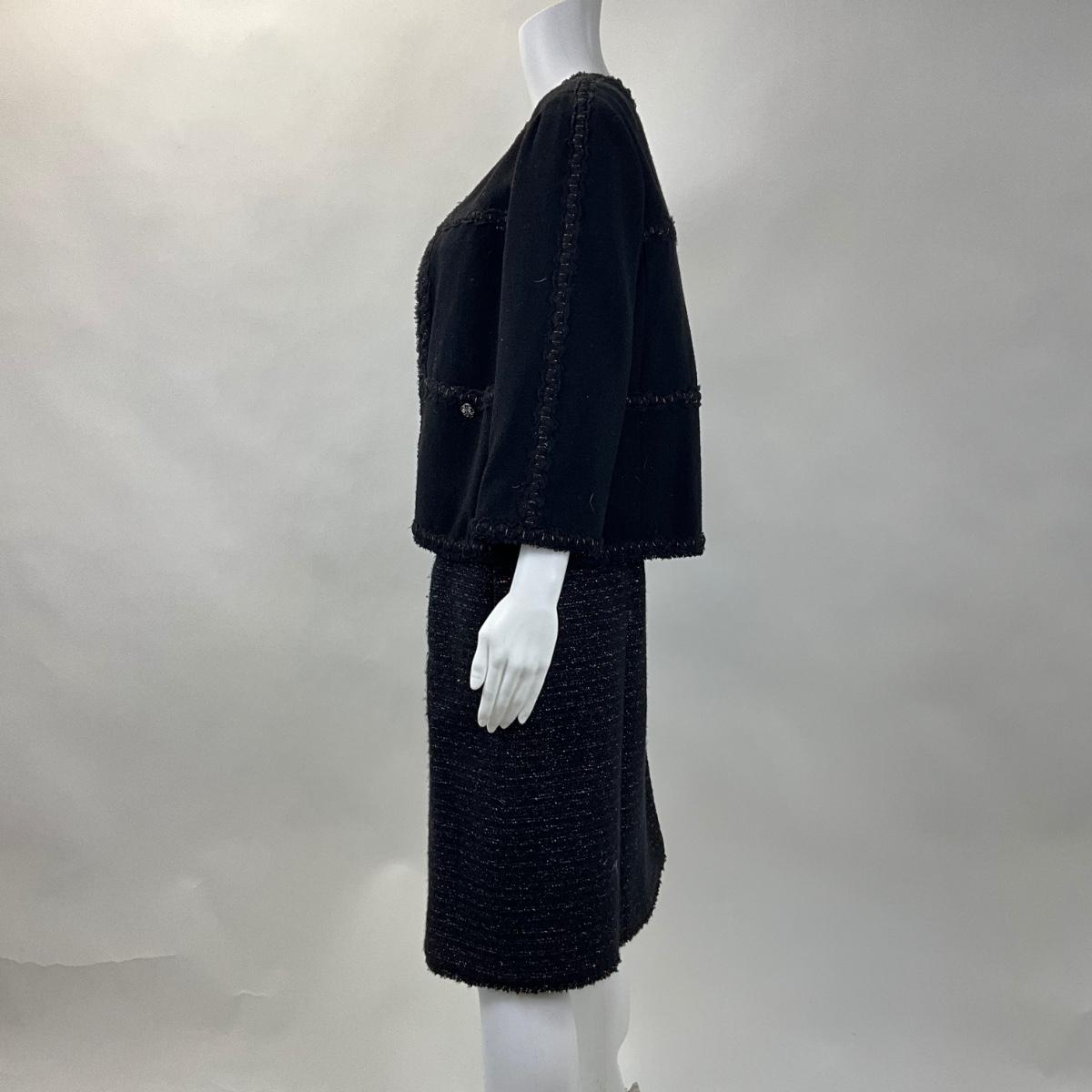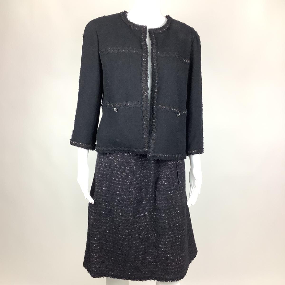 304 CHANEL Black/Bronze 2pc. Tweed Jacket & Skirt Size 44