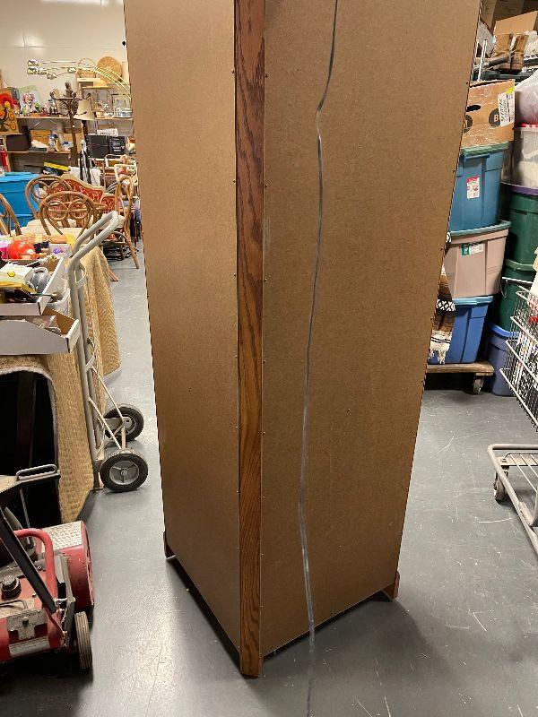 Used, 83" Tall 34 inches wide, 21 inches deep. Good Condition. High Quality piece of furniture.