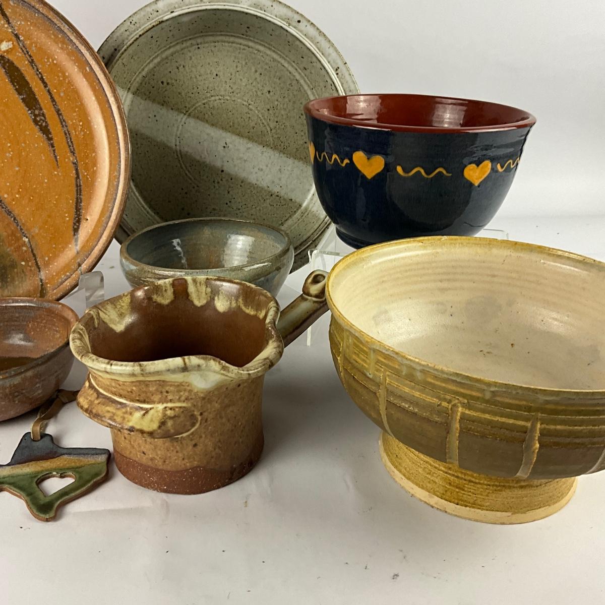 Turtlecreek Heart bowl with large round platter with dip bowl , deep dish round plate, dipper, pedestal bowl small pitcher