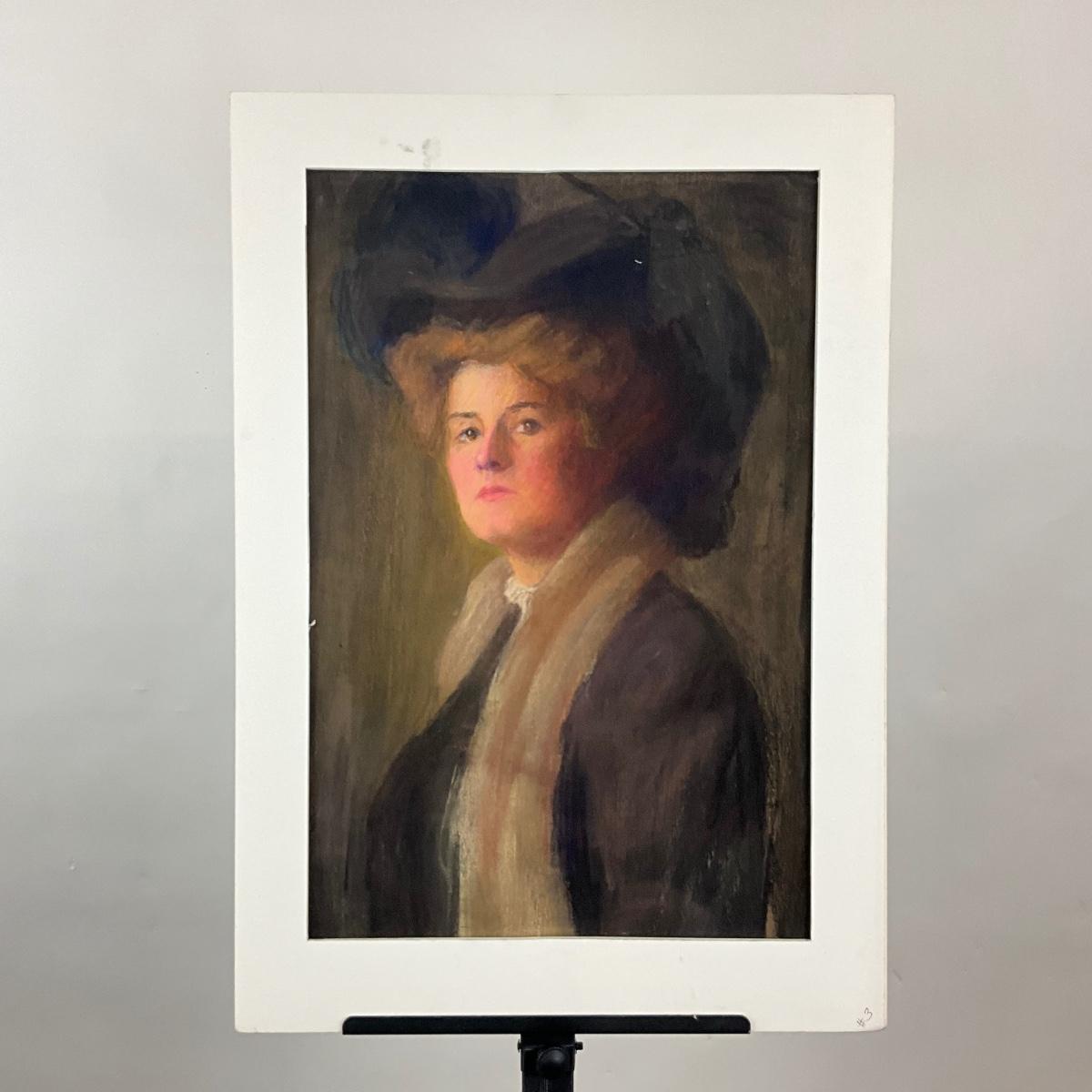 209 American School, Pastel Portrait Of Lady With Coat And Scarf With Hat 20th Century