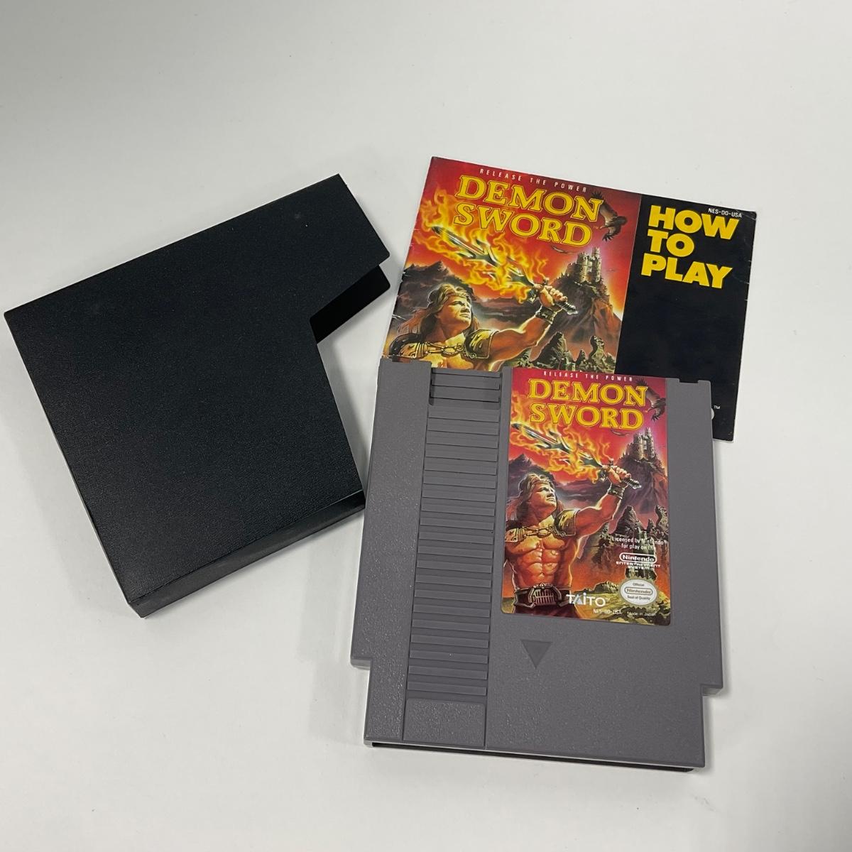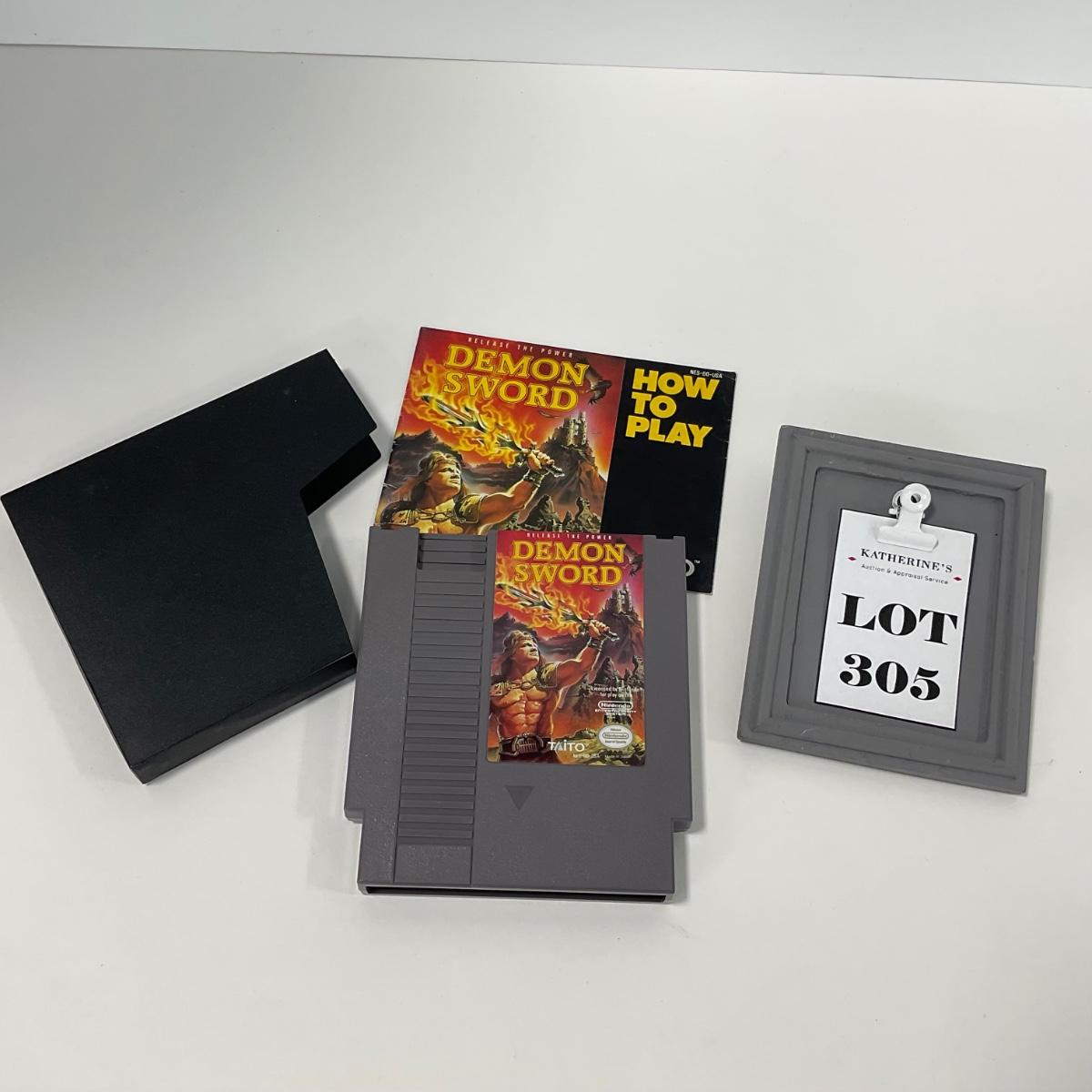 One vintage demon sword Nintendo game and booklet. Believed to be in working order however not guaranteed. Please see photos for details and condition. ::: Shipping is available on this lot. If you require shipping you must let us know at the close of the auction. We will coordinate with you after the item has been won. Shipping fees will include insurance up to or exceeding the value of all items being mailed. If you have any questions regarding this lot please contact the auctioneer either via this website, by direct email or by phone. PICK UP TIMES and other important information can be found in the TERMS and DESCRIPTION of the auction. Please take a look for pertinent information. Thanks!
