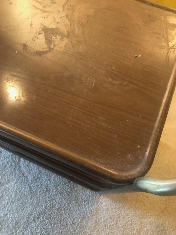Brown Metal, dent on lower shelf. Needs a thorough cleaning 27 X 16 x 31