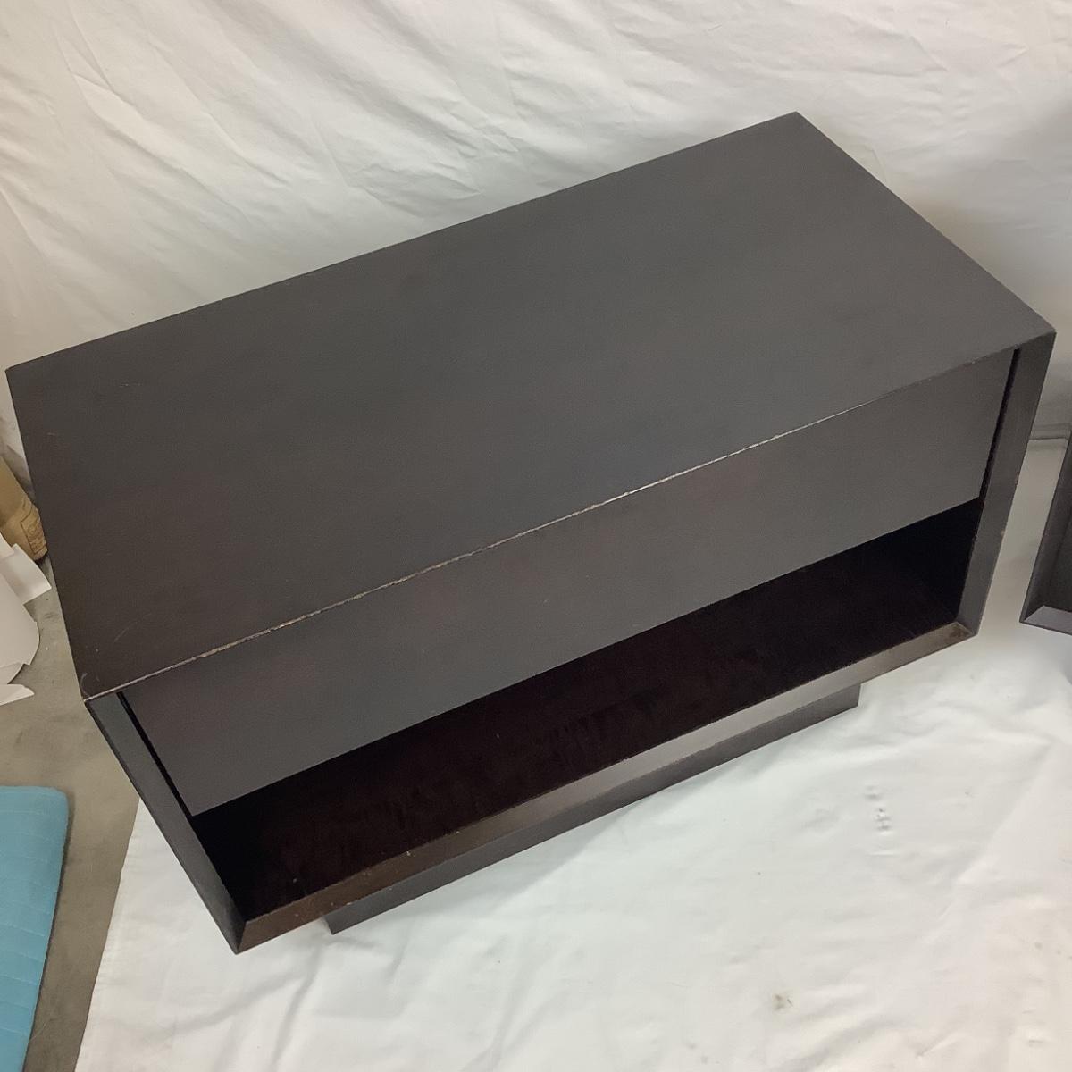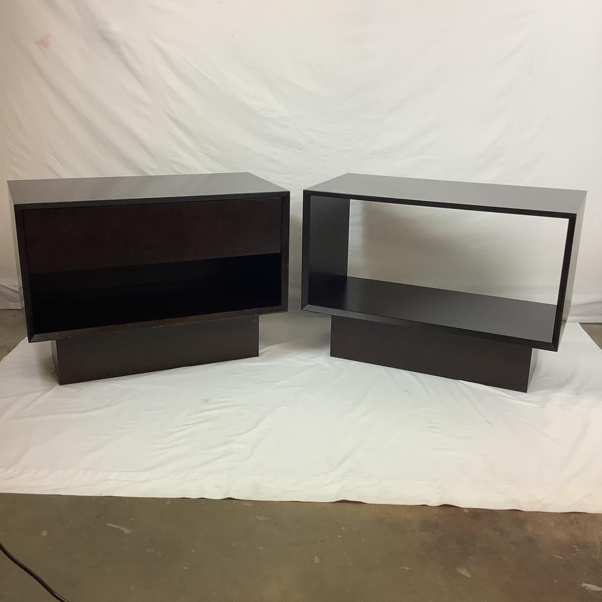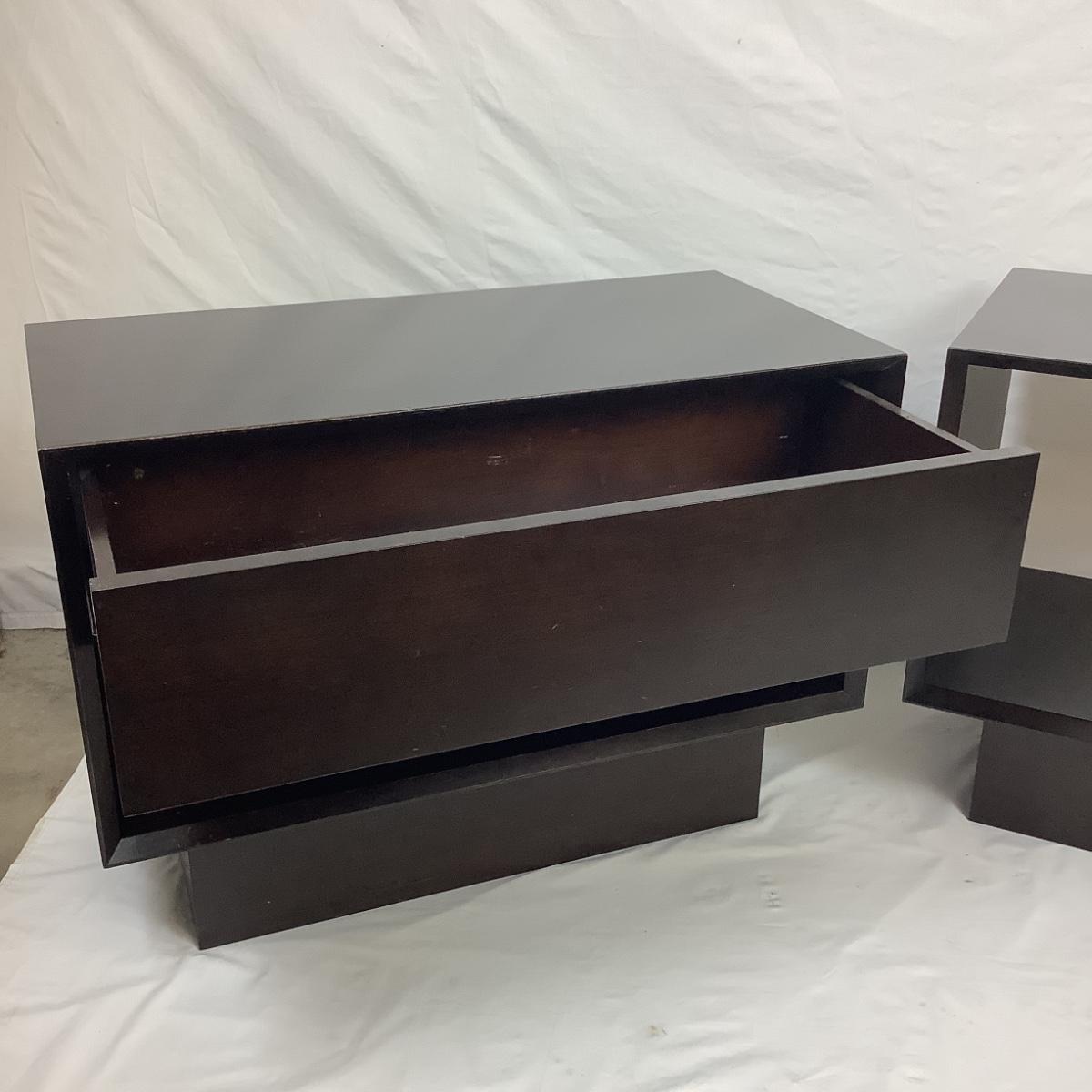 CUDRAW & CUPEBE Side Tables with Dark Walnut Finish. Both the same size, one comes with drawer. Purchased from Dialogica Order in New York