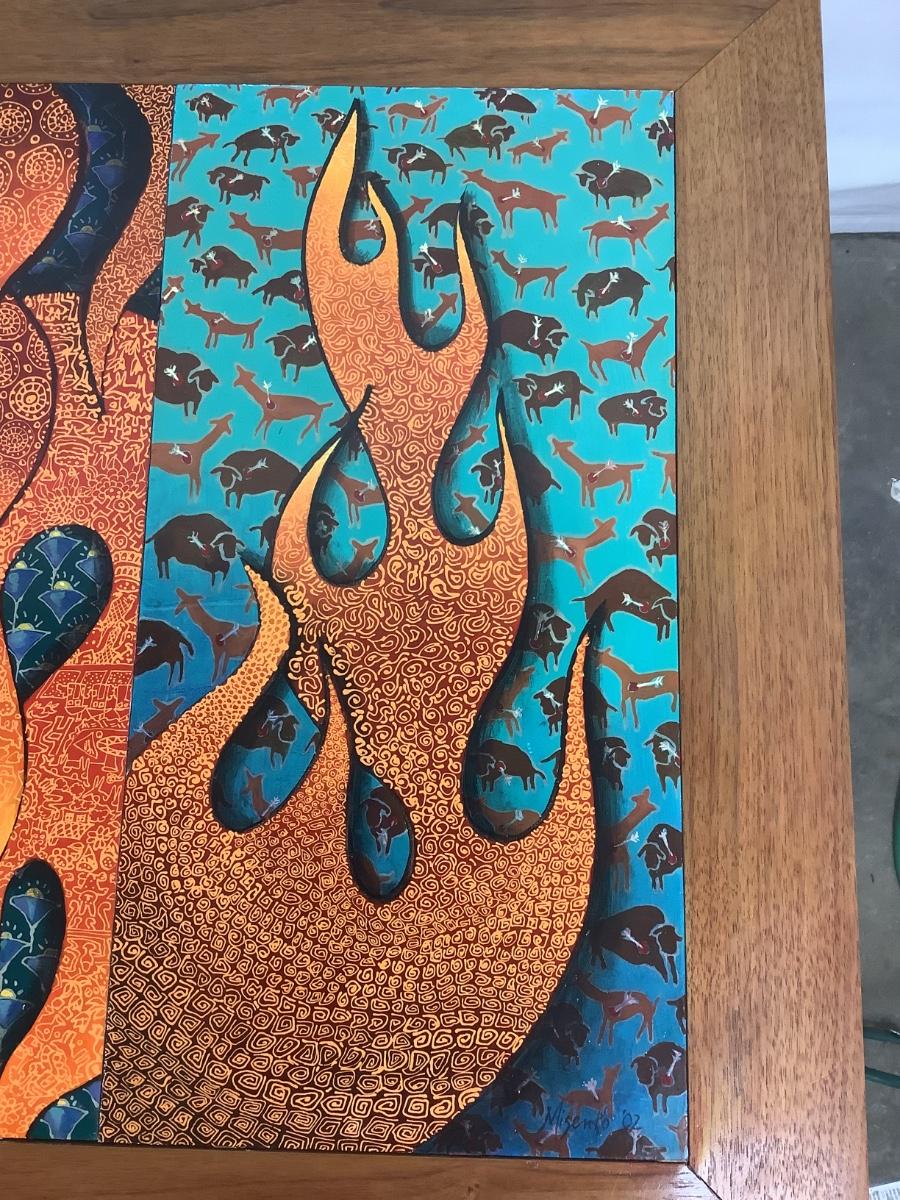 3066 Unique Solid Wood Modern Handmade Painted Table Signed By Artist
