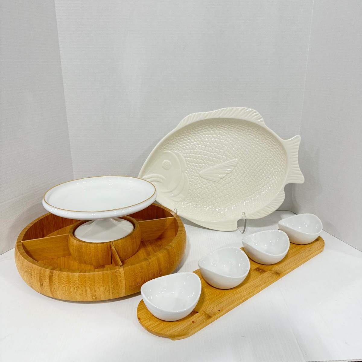 307 Carousel Bamboo Serving Dish with Fish Platter and Core Bamboo Server