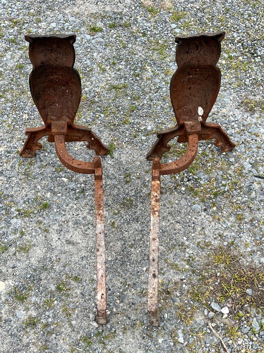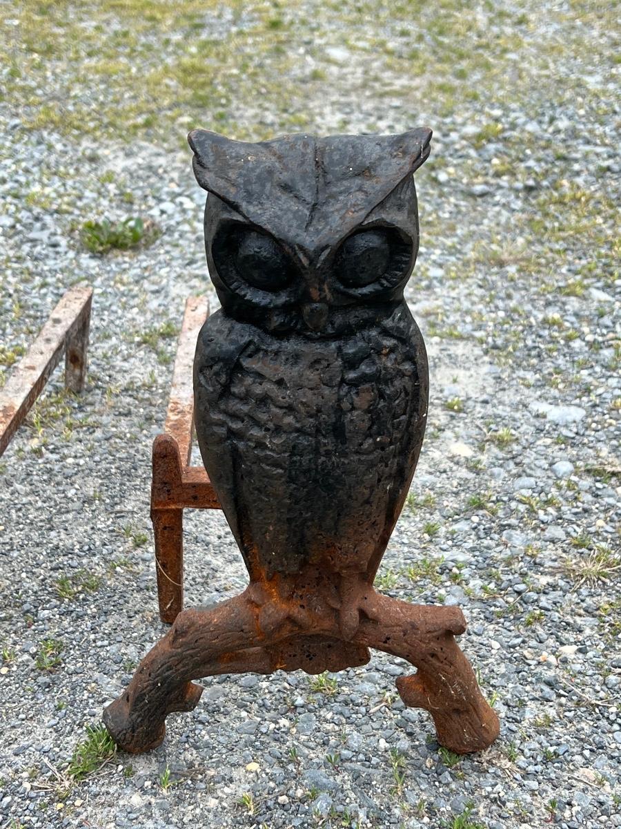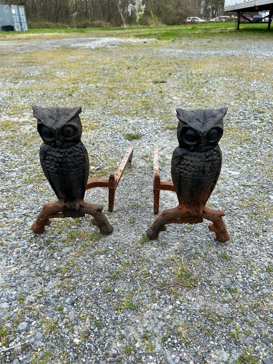 Iron vintage owl andirons 13 1/2" tall