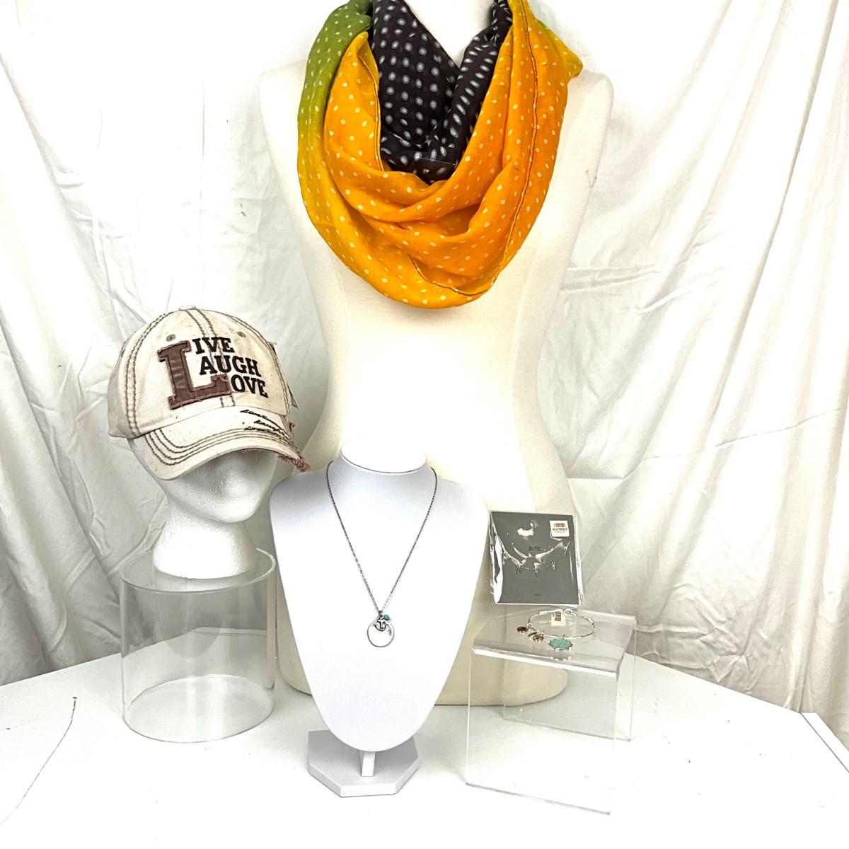 307 LIve, Laugh, Love Hat, Infinity Scarf, Necklace, Earrings, Bracelet, Faith Necklace