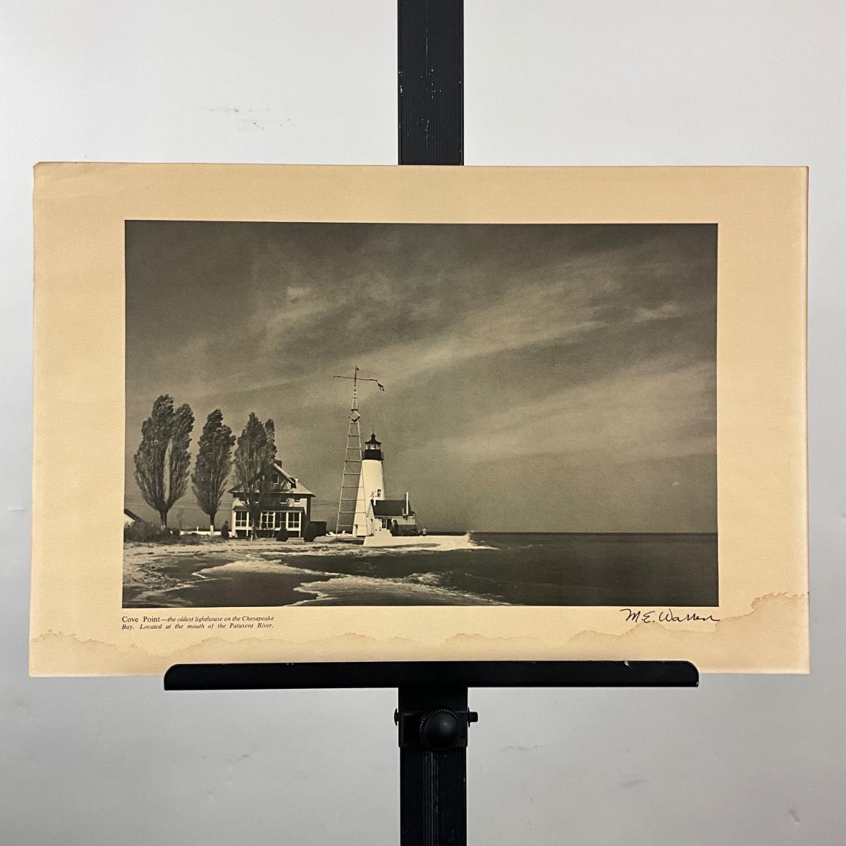 213 Black & White Photo Of Oldest Lighthouse On Chesapeake Bay "Cove Point" Signed M.E. Warren