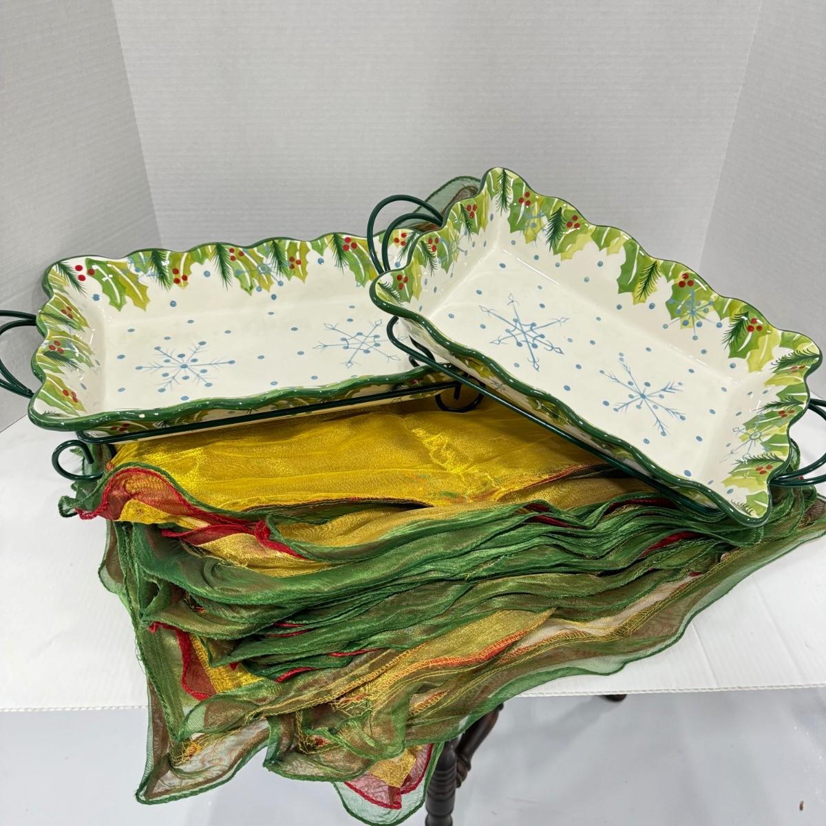 308 Lot of Holiiday Napkins with Casserole-dishes with Stands