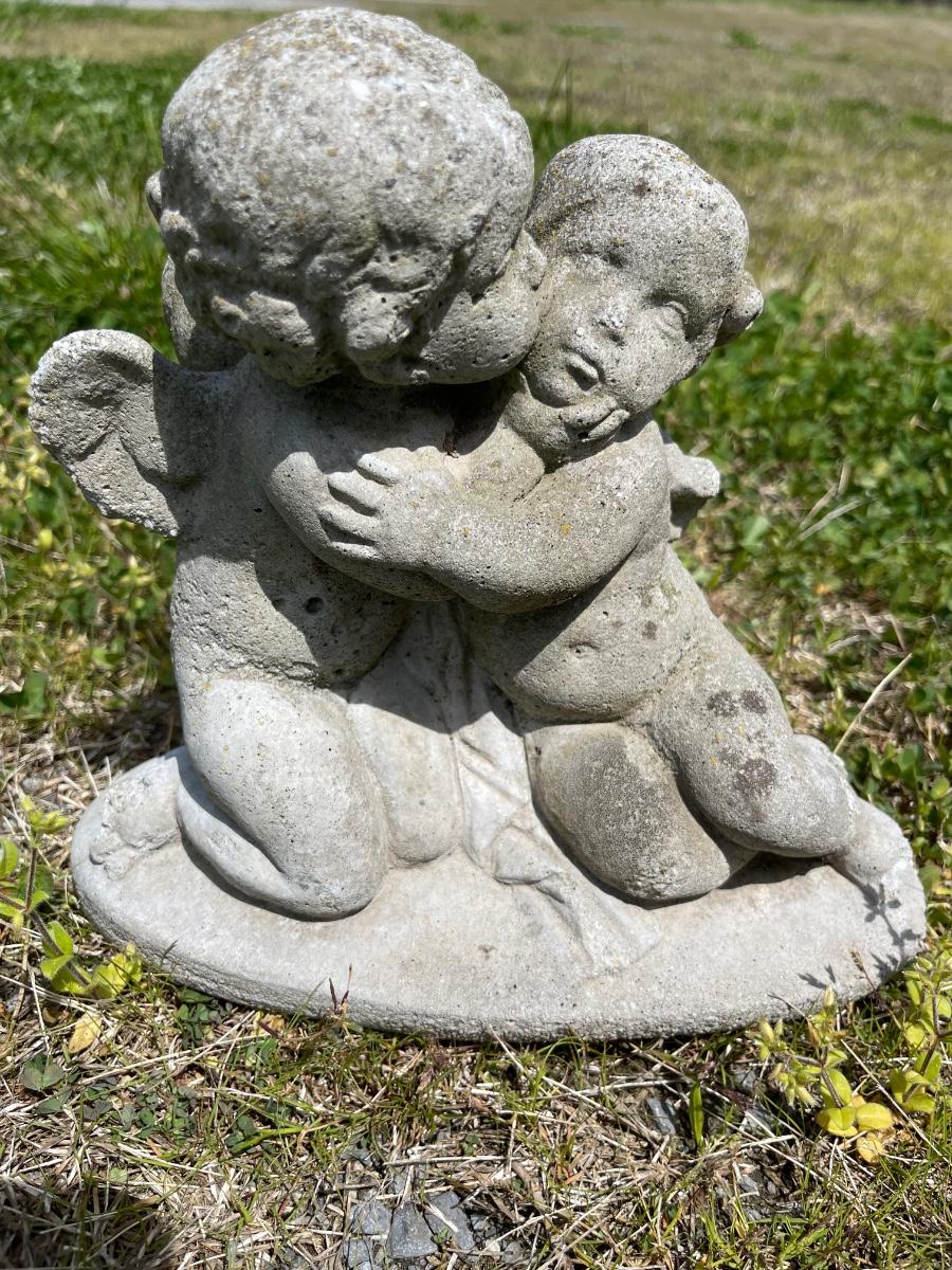 Cement cherub statue