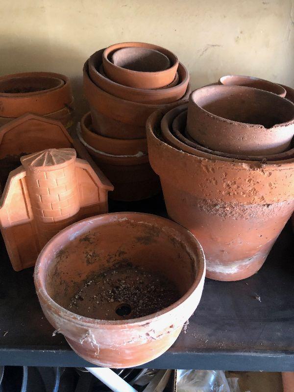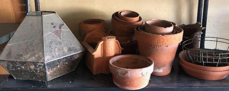 #309 Shelf full of Clay Pot + a Terrarium Glass